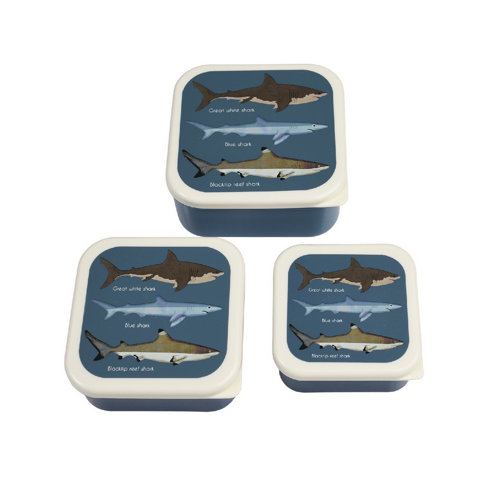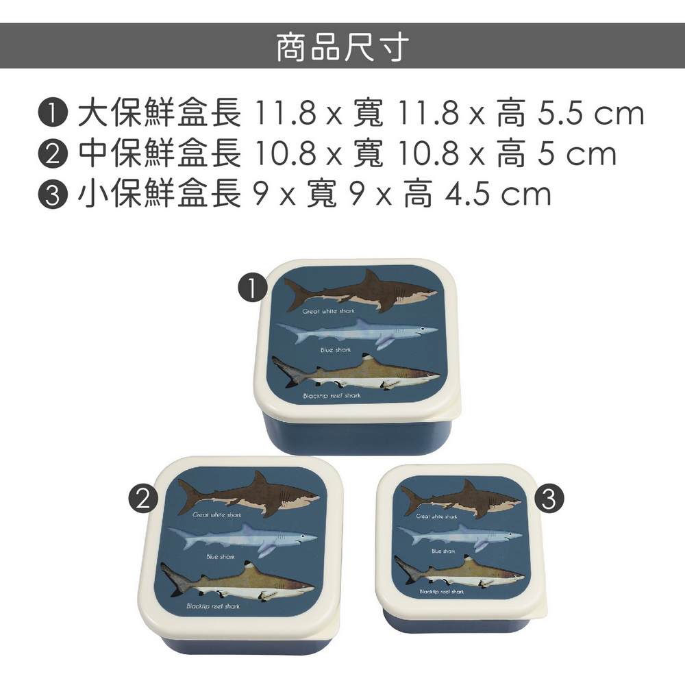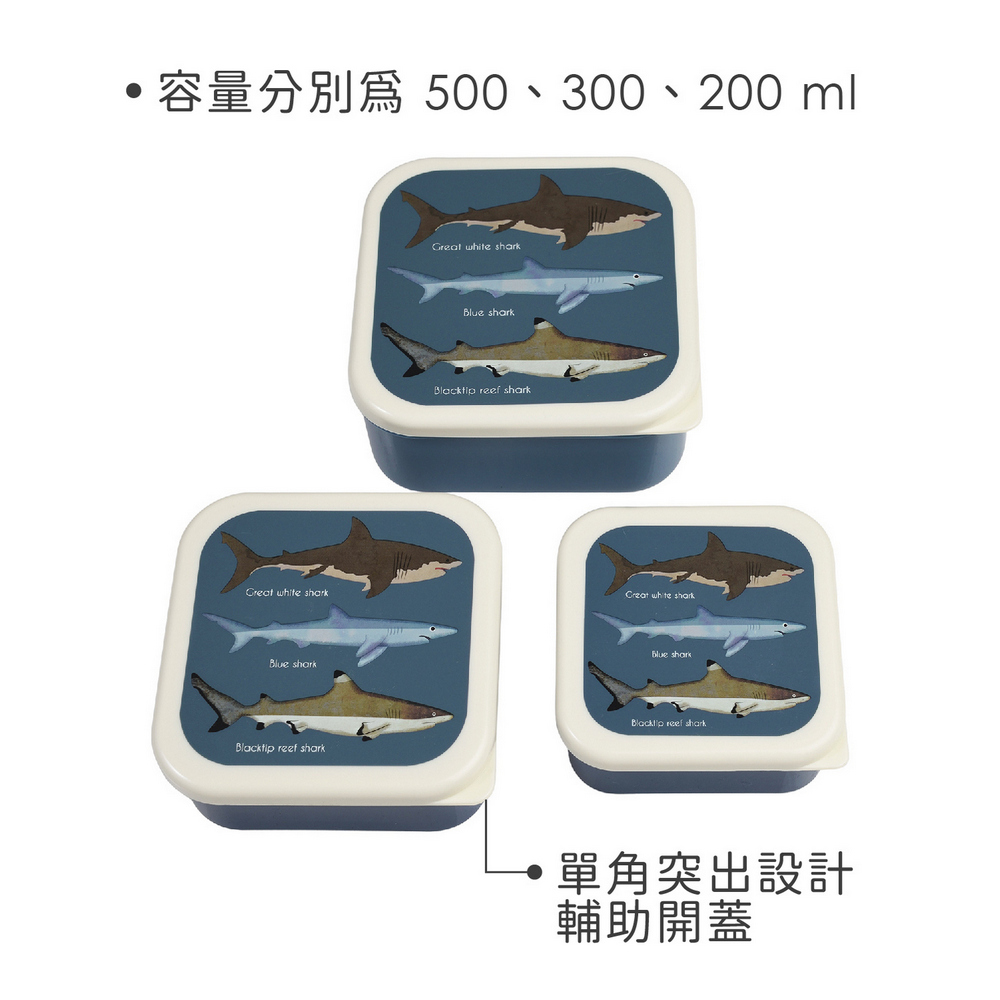 英國 Rex LONDON - 堆疊PP保鮮盒3件(鯊魚圖鑑) / 收納盒 環保餐盒 便當盒 野餐
