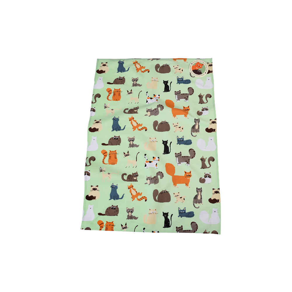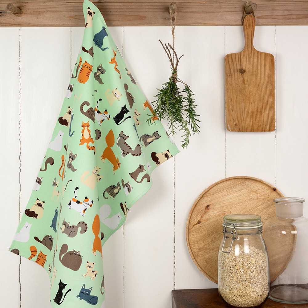 英國 Rex LONDON - 純棉茶巾擦拭布(貓派對) / 廚房抹布 清潔布 擦拭布