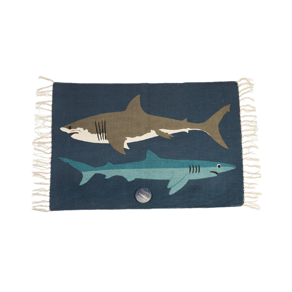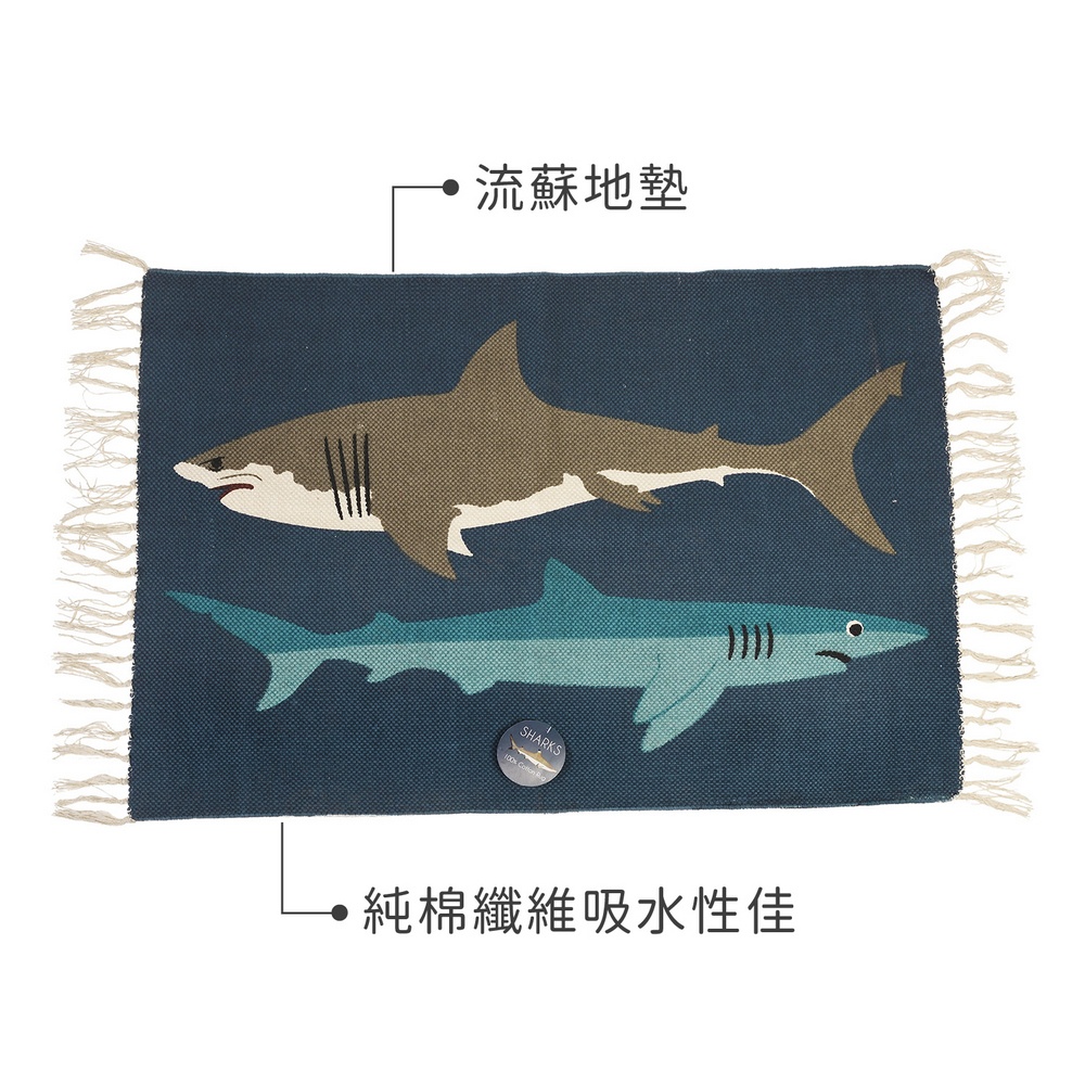 英國 Rex LONDON - 流蘇純棉地墊(鯊魚圖鑑) / 擦腳墊 腳踏墊 吸水墊