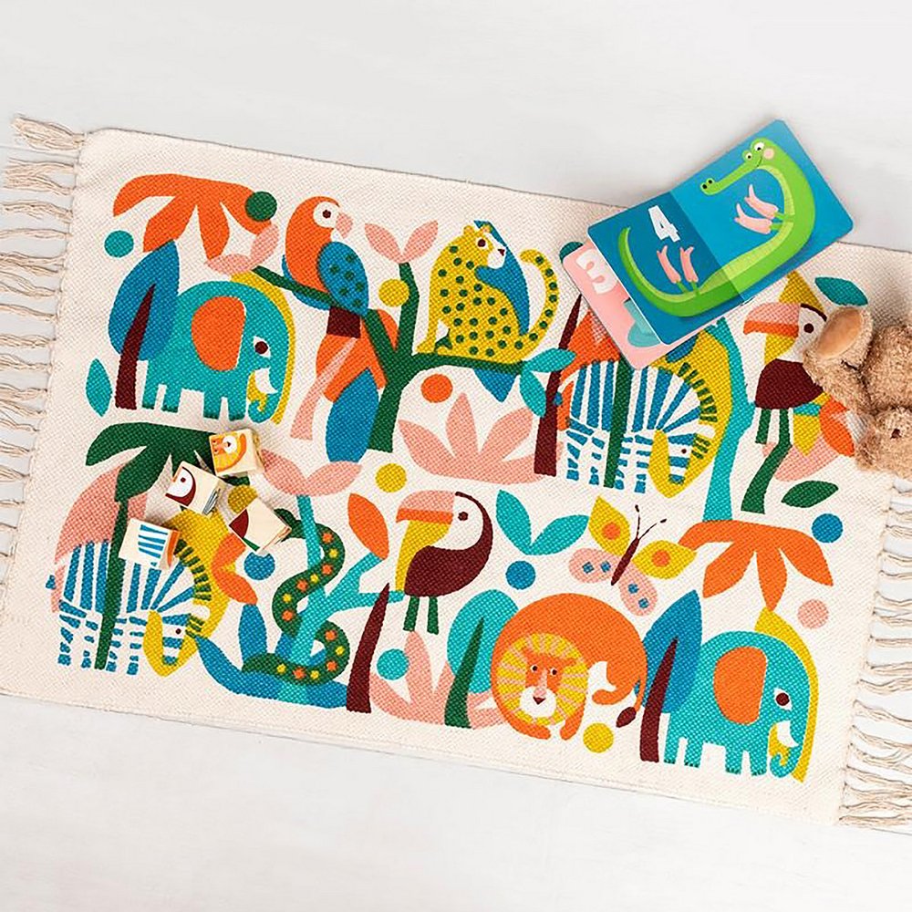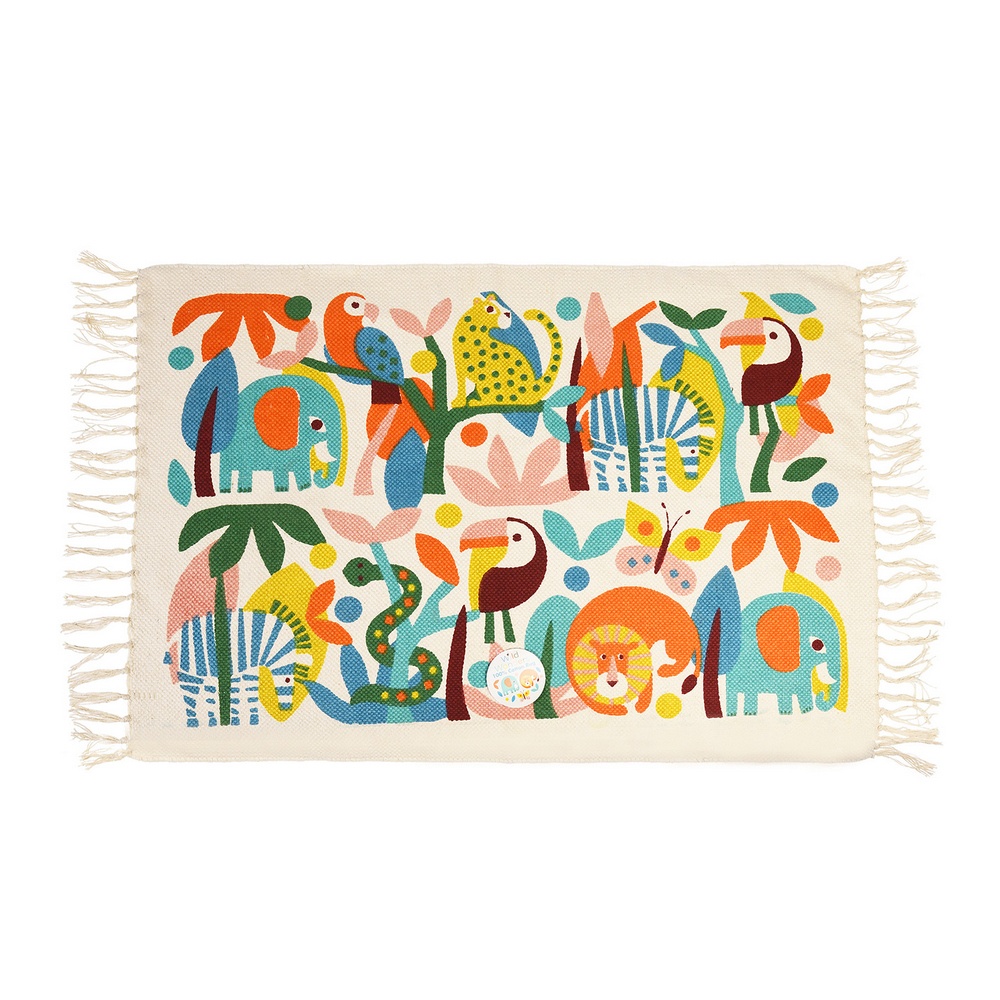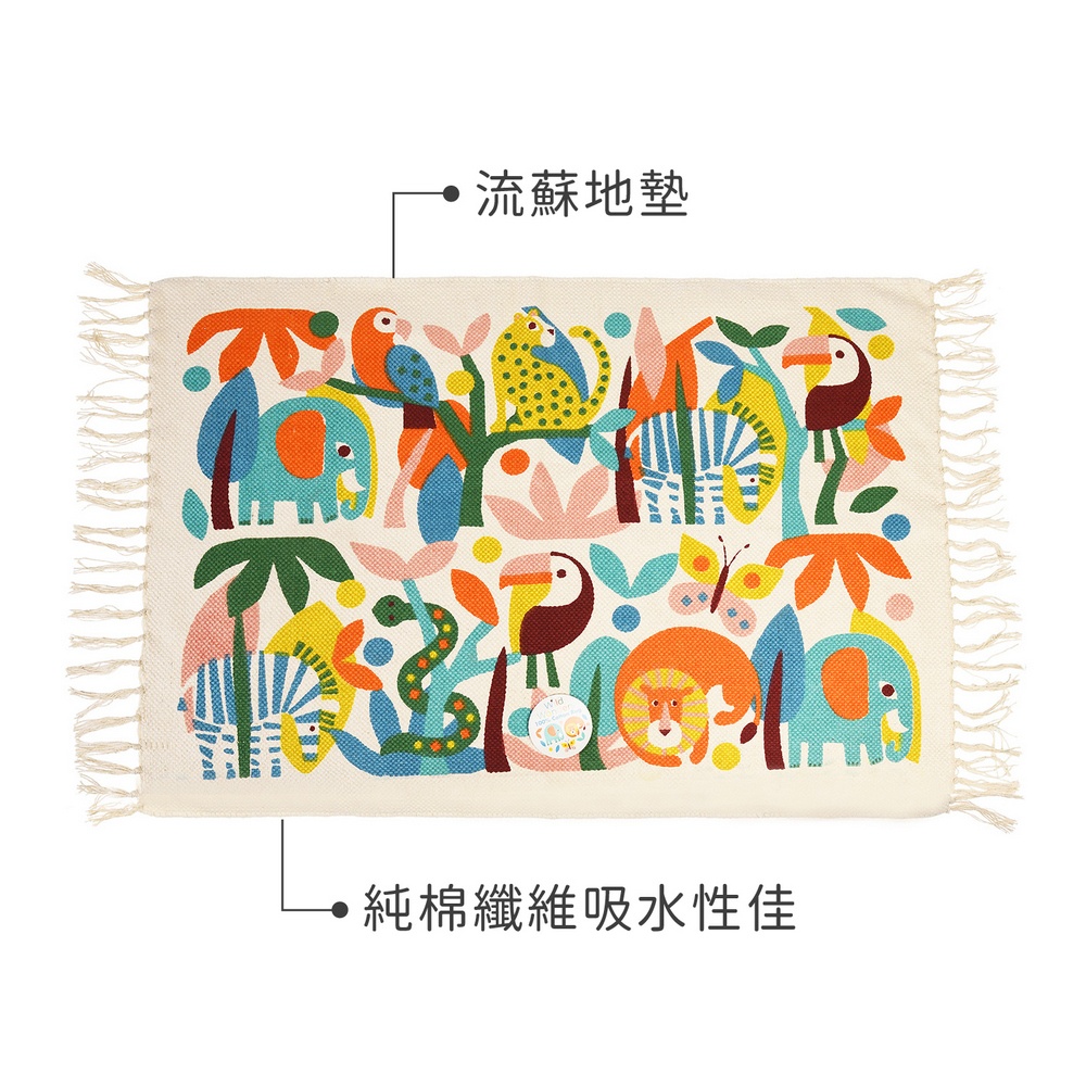 英國 Rex LONDON - 流蘇純棉地墊(熱帶動物) / 擦腳墊 腳踏墊 吸水墊