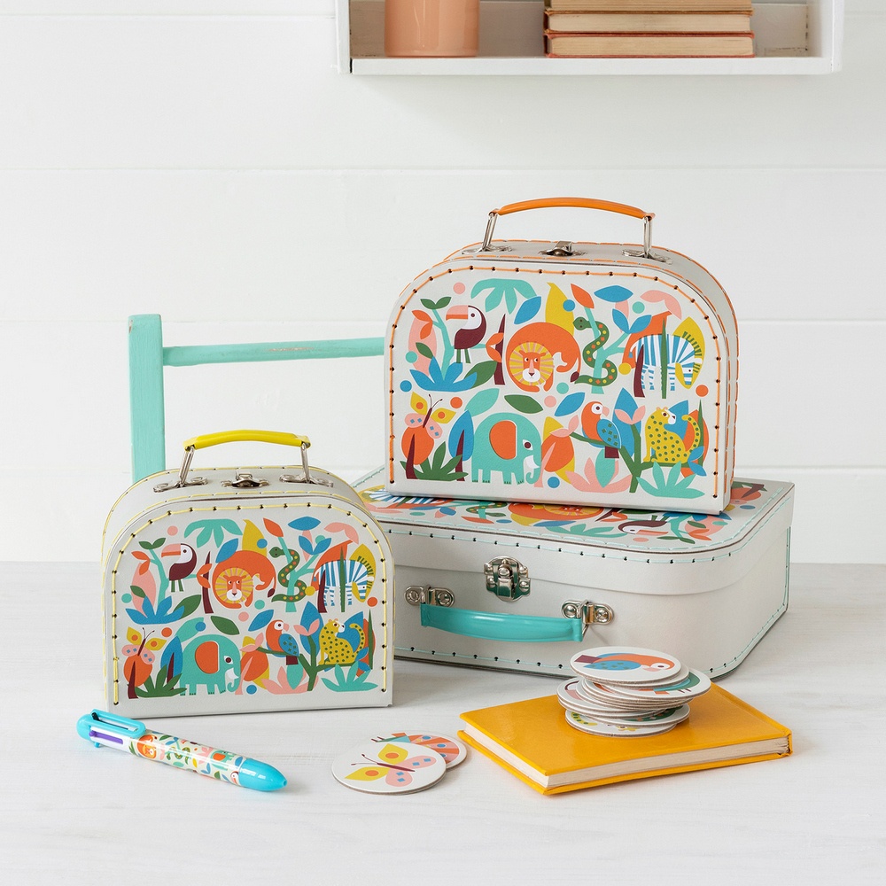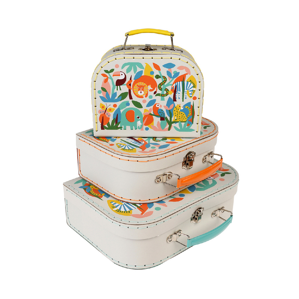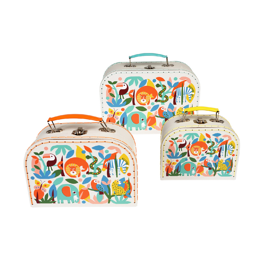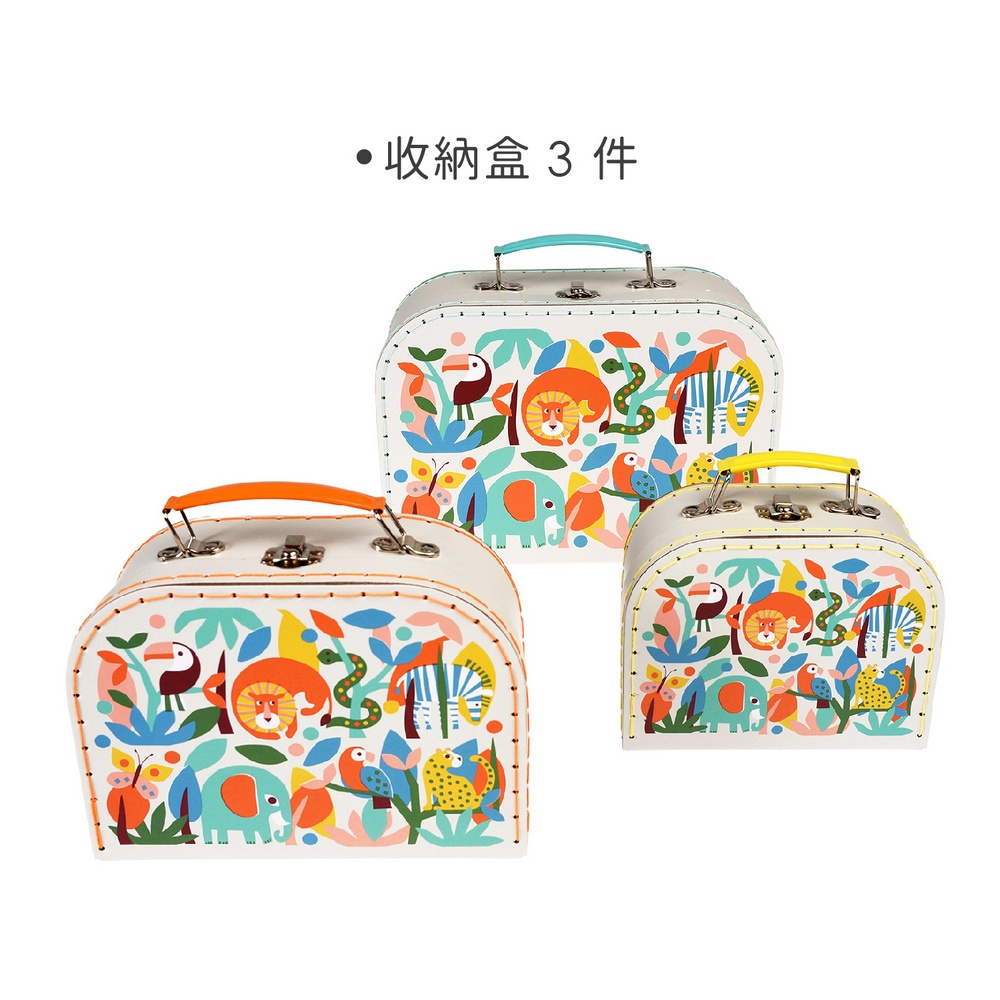 英國 Rex LONDON - 扣式收納盒3件(熱帶動物派對) / 整理籃 置物籃