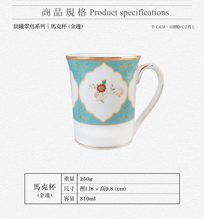 ※ 此商品含有金銀邊飾設計,不可使用微波爐。