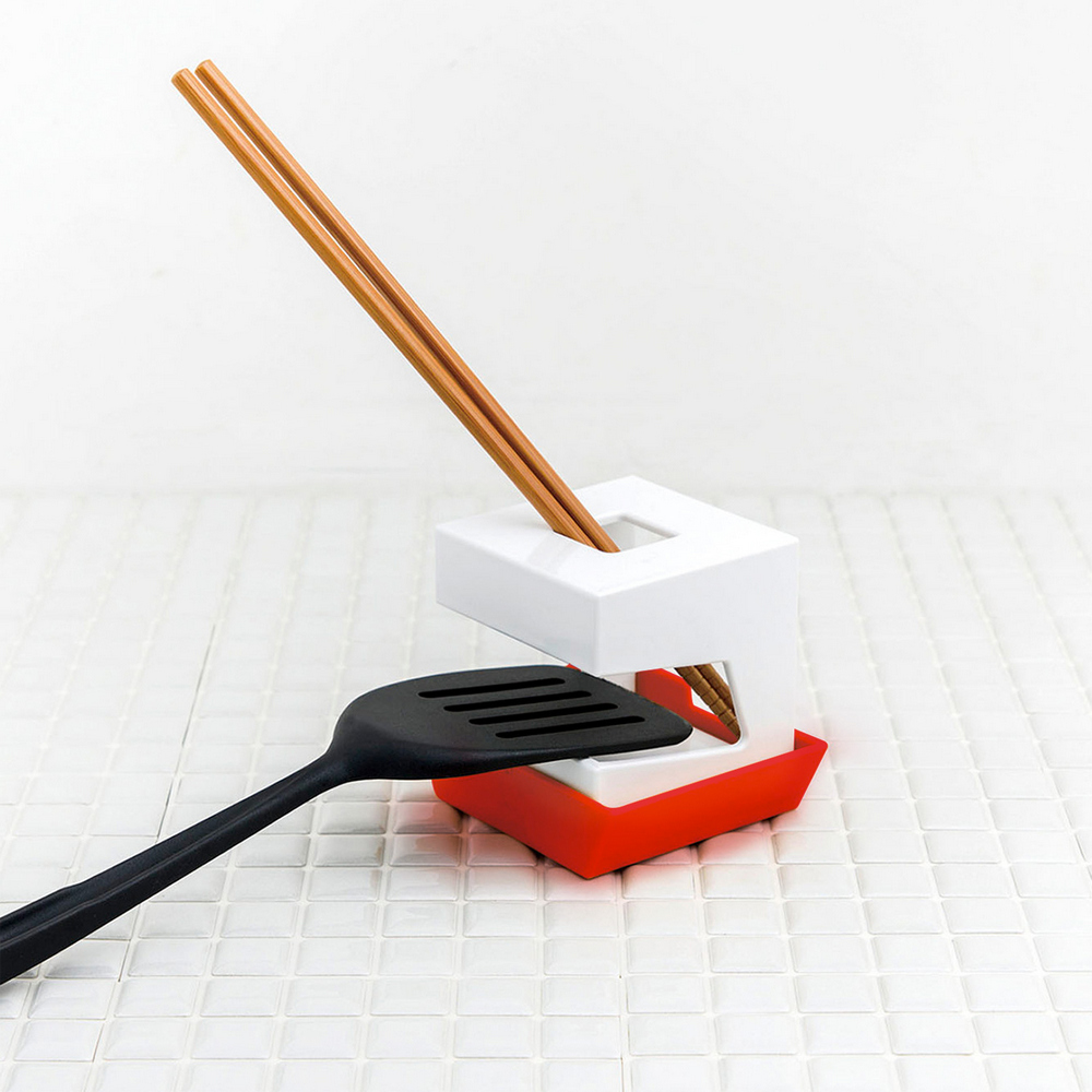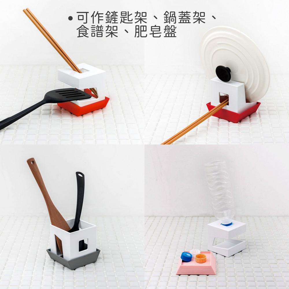 日本 八幡化成 - 小屋鍋蓋鏟匙架(胭紅) / 湯勺架 鍋鏟架 廚具收納