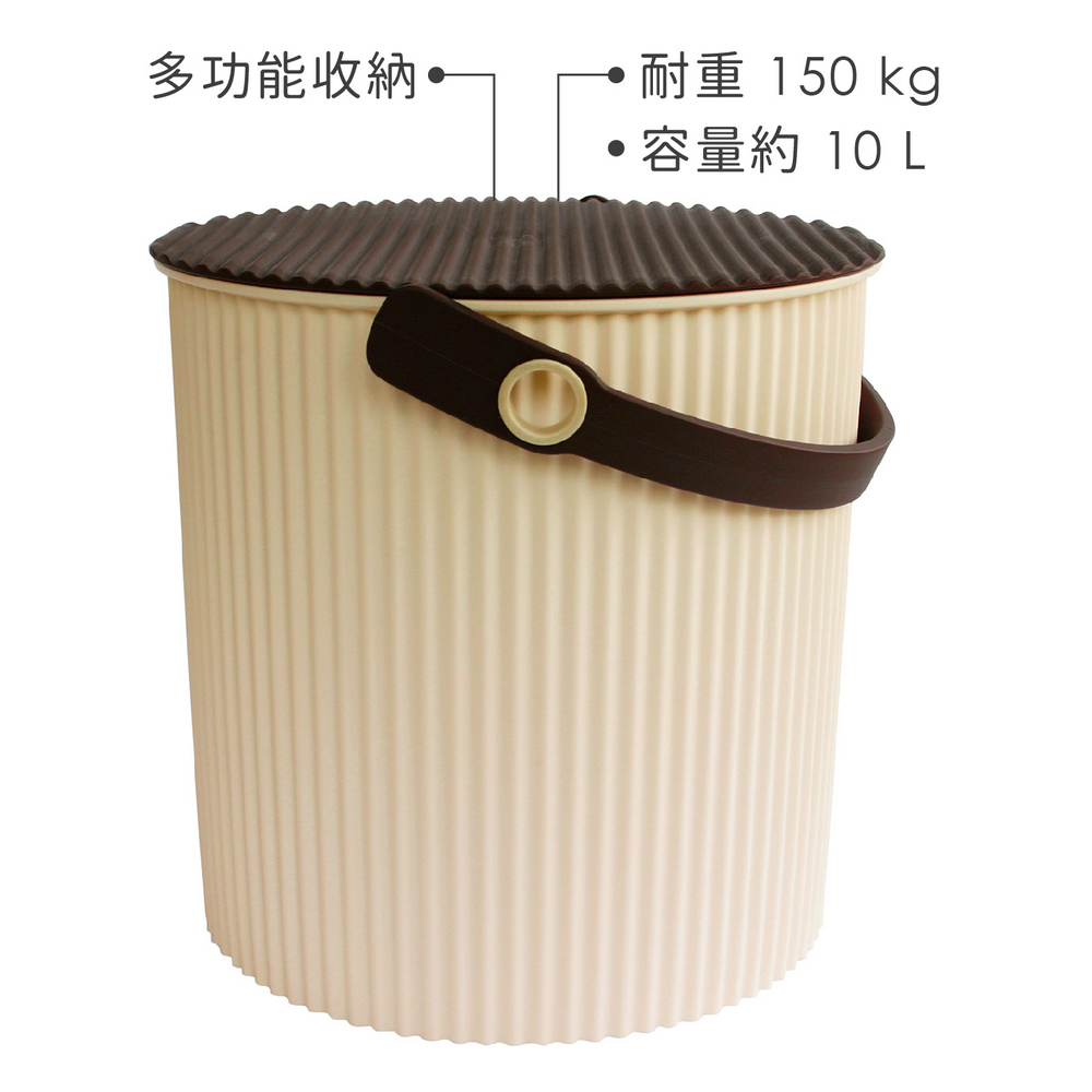 日本 八幡化成 - 波紋收納桶(米棕10L) / 整理籃 置物籃 儲物箱