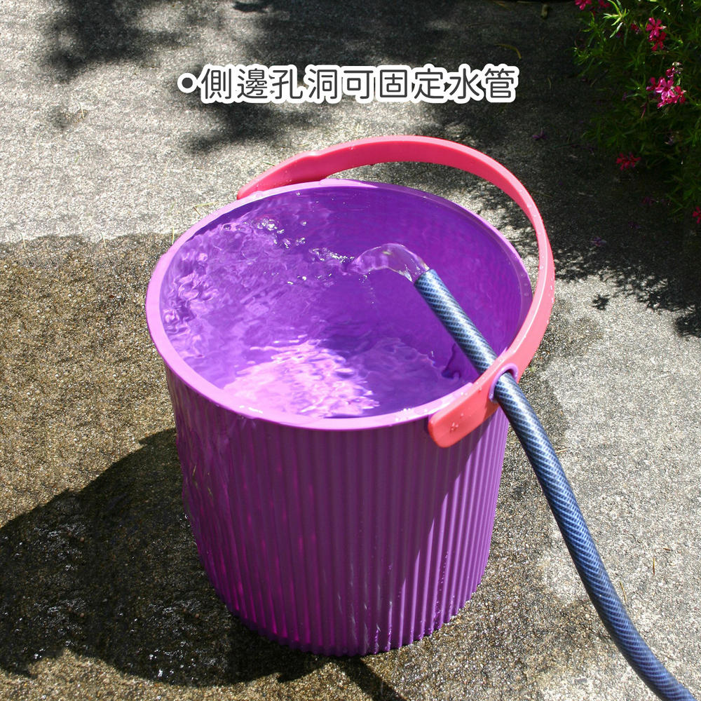 材質:PP 塑料 (桶身、蓋、提把)、PE 塑料 (水管插孔)