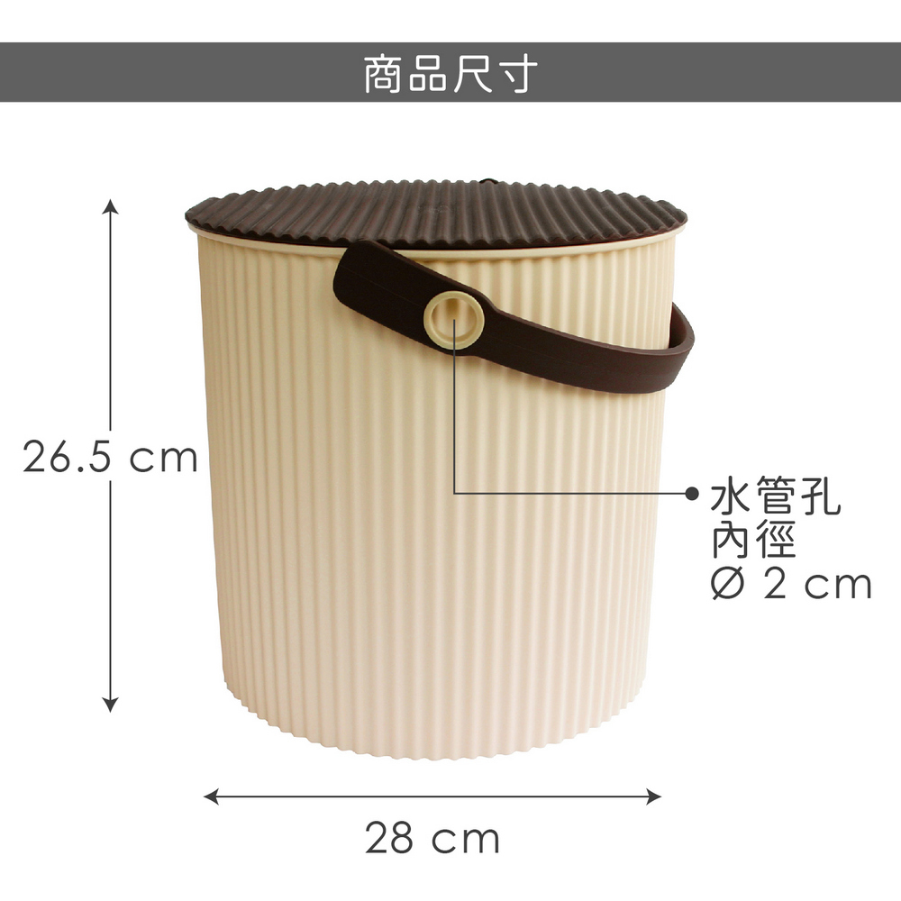 尺寸:含蓋時長 28 x 寬 26.7 x 高 26.5 cm;提把高 13.5 cm、水管孔內徑 2 cm
