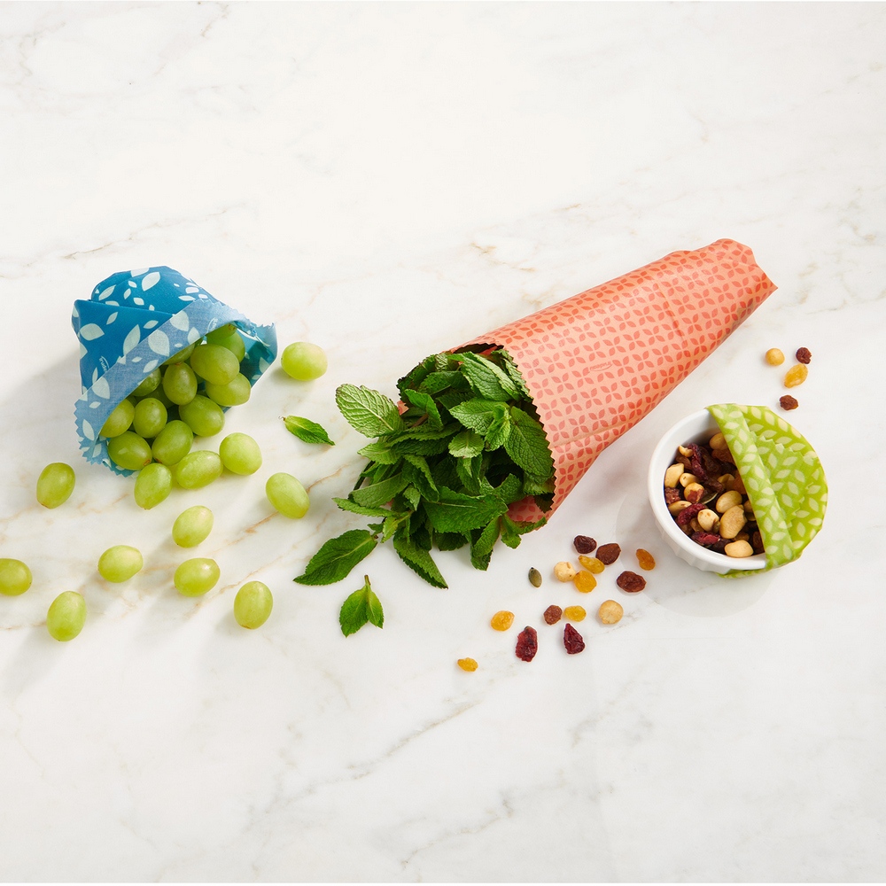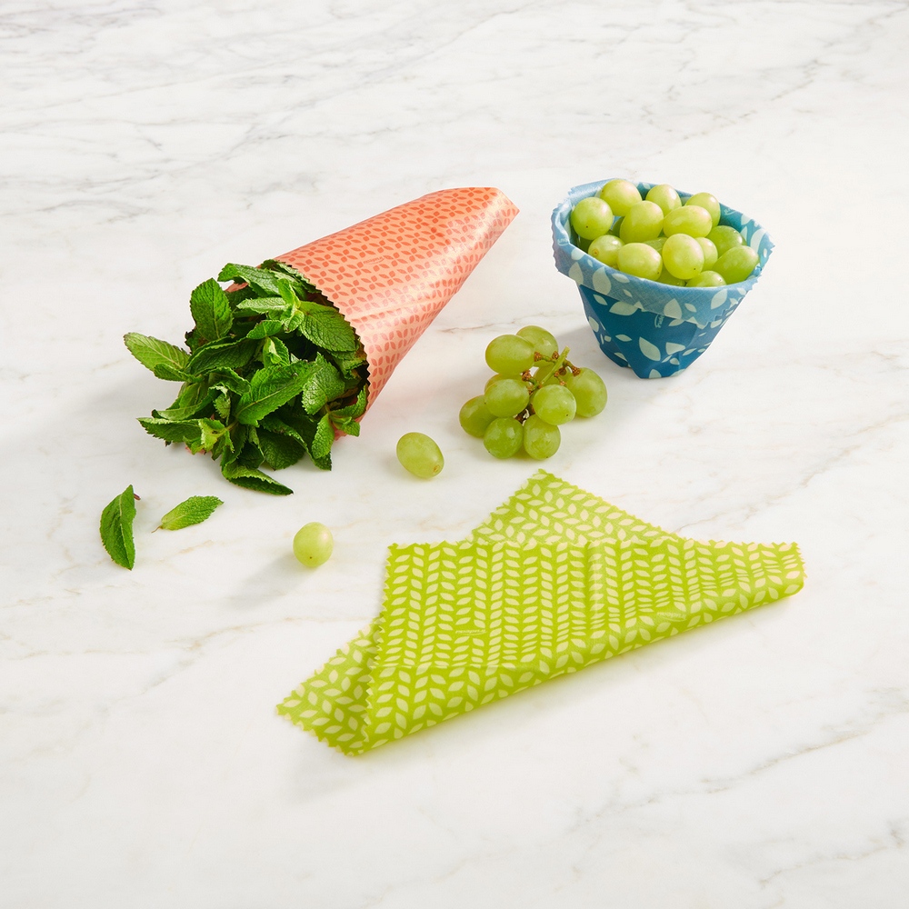 加拿大 Trudeau - Eco蜂蠟保鮮布3件(花葉) / 環保密封袋 保鮮收納袋