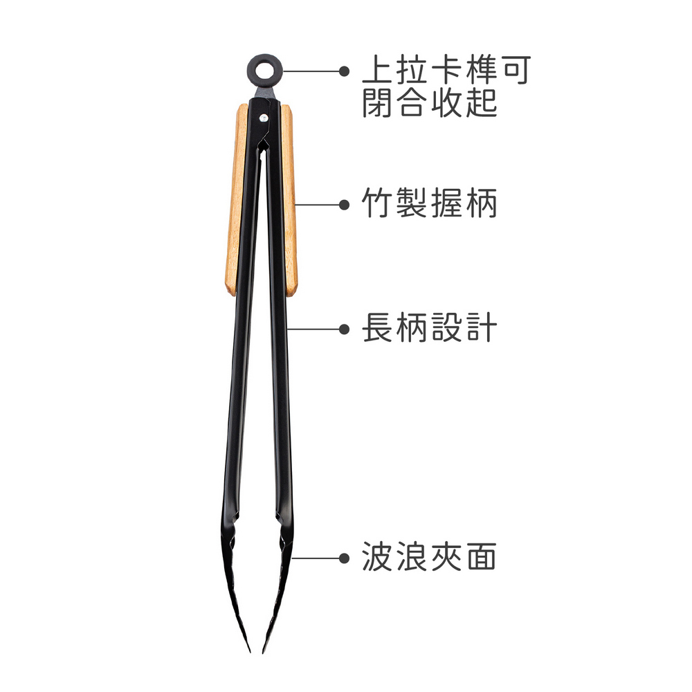 德國 REFLECTS - 竹柄不鏽鋼烤肉餐夾(黑40cm) / 不鏽鋼烤肉夾 耐熱料理夾 烹飪烤肉食物夾