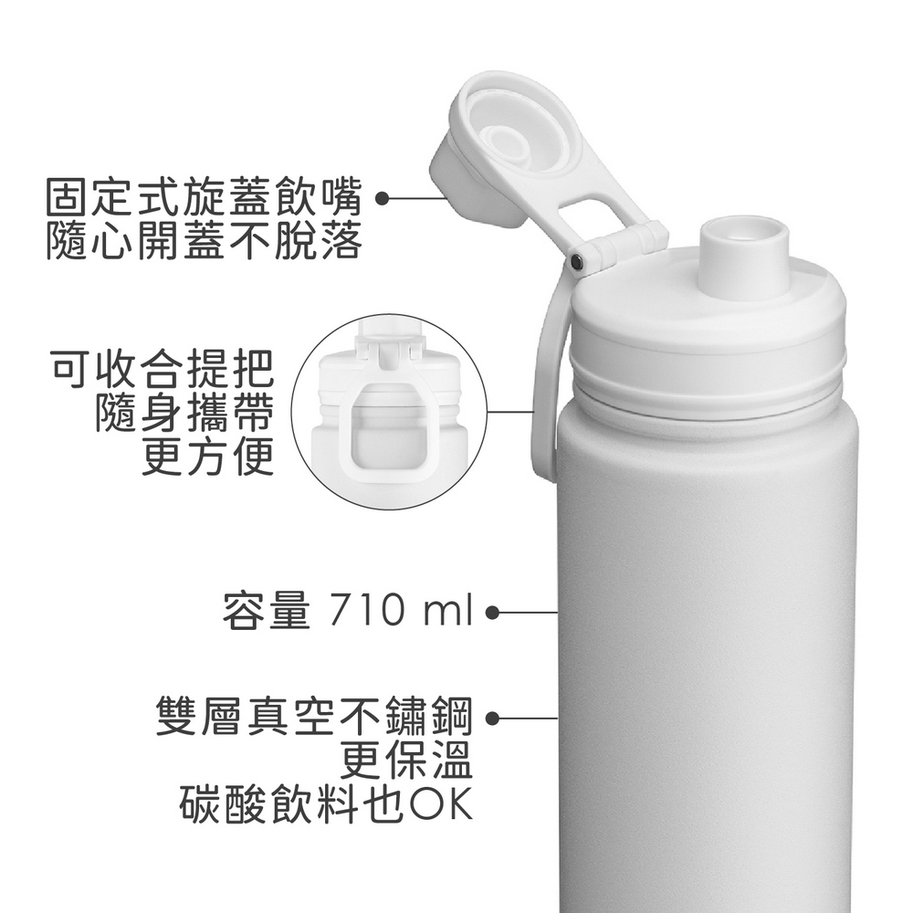 德國 REFLECTS - Retumbler提把雙層不鏽鋼保溫瓶(雲朵白710ml) / 保冰 保冷 運動水壺 保溫杯