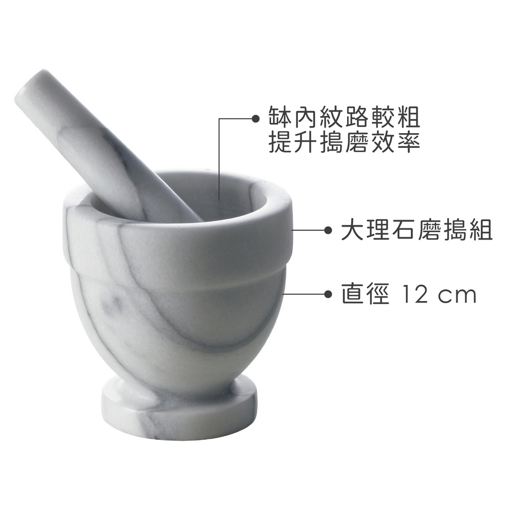 義大利 EXCELSA - Pesto大理石磨搗組(12cm) / 研磨缽 磨藥機 搗泥器 杵臼 搗缽