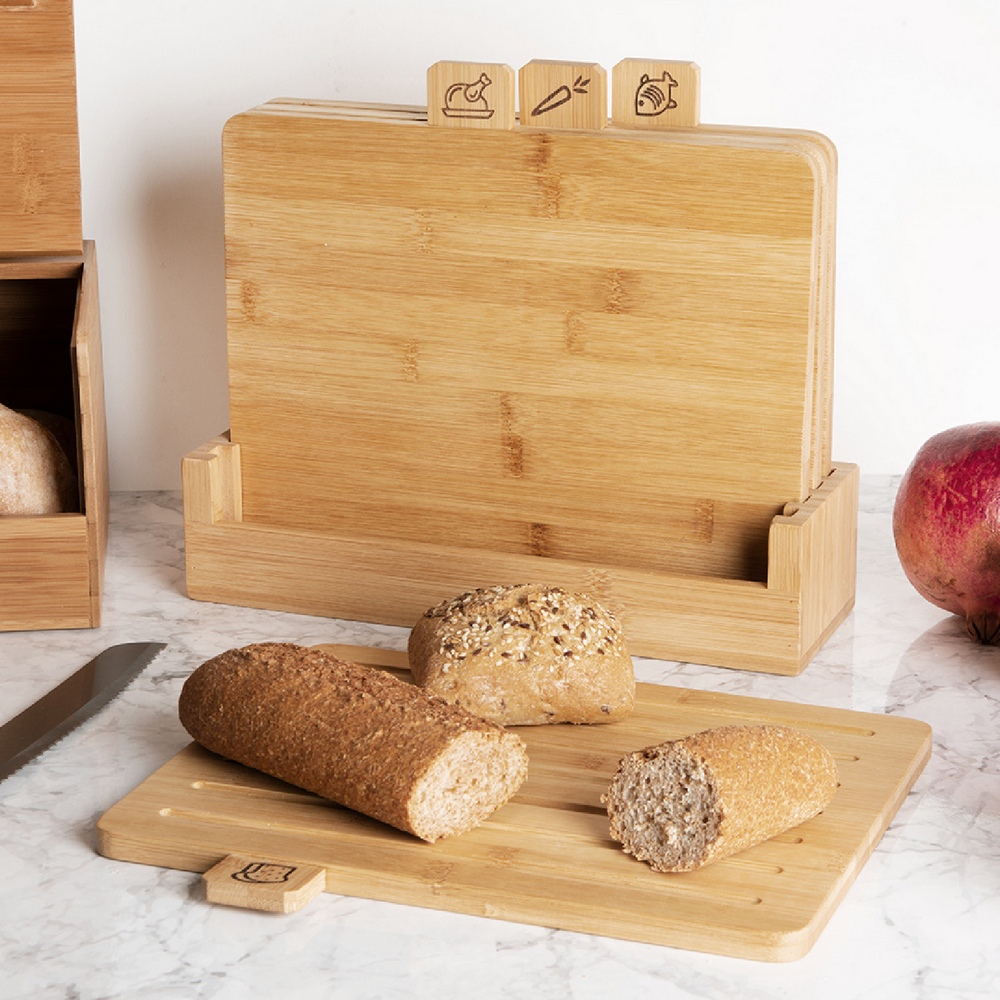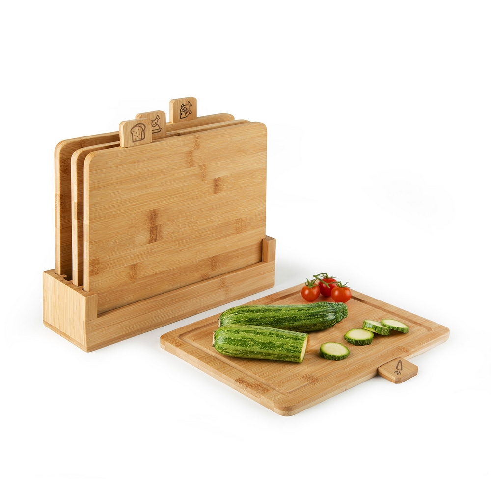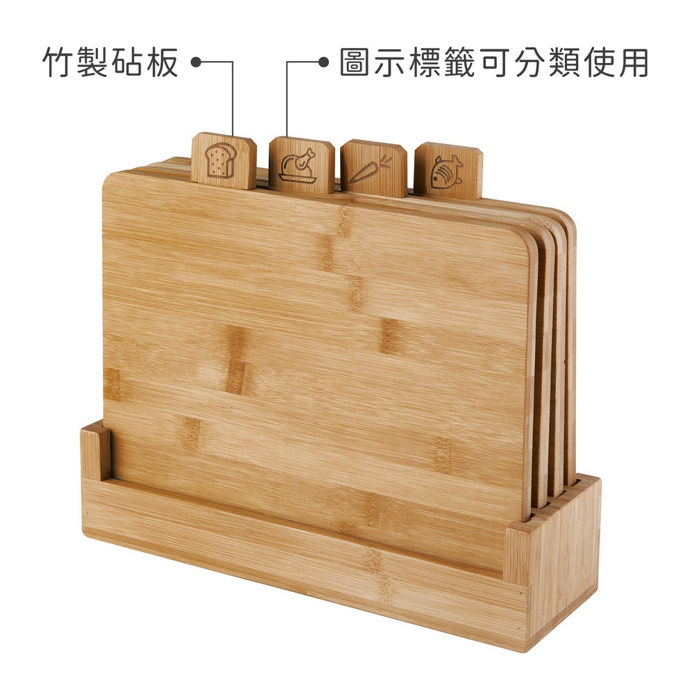 義大利 EXCELSA - Eco收納座+分類竹製砧板4入 / 切菜 切菜砧板