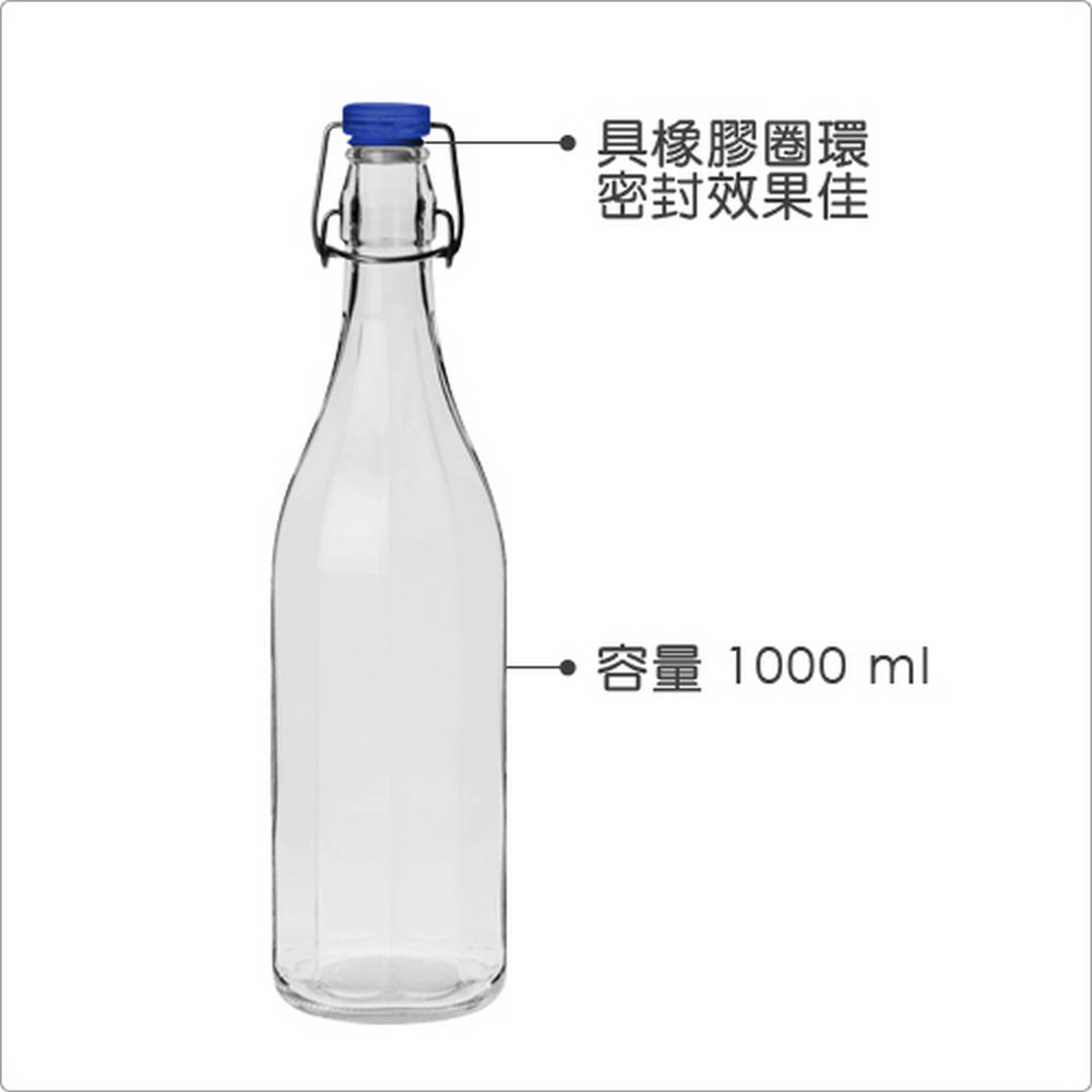 義大利 EXCELSA - 直紋扣式密封玻璃水瓶(藍1000ml) / 水壺