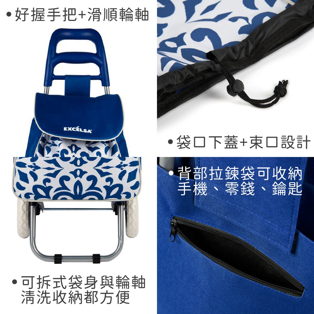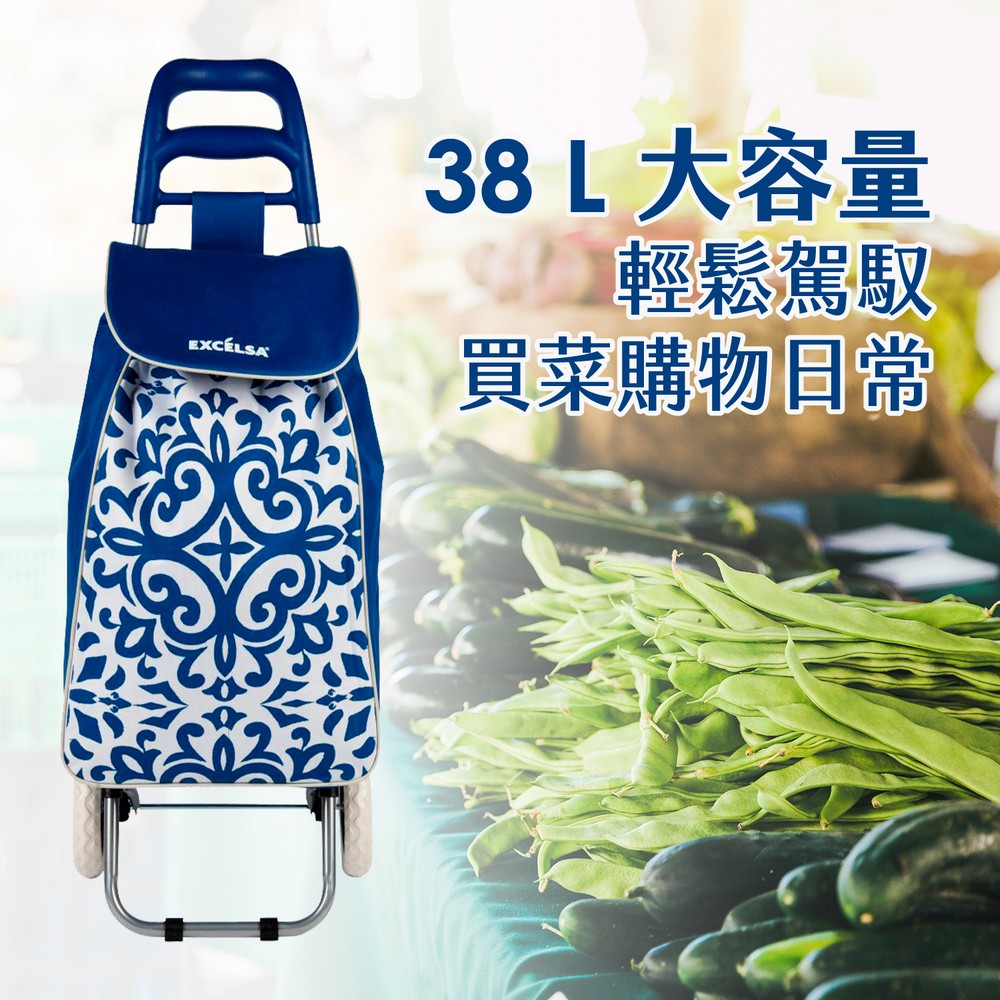 義大利 EXCELSA - Boheme blue購物菜籃車(波西米亞藍38L) / 菜籃車 買菜車 推車