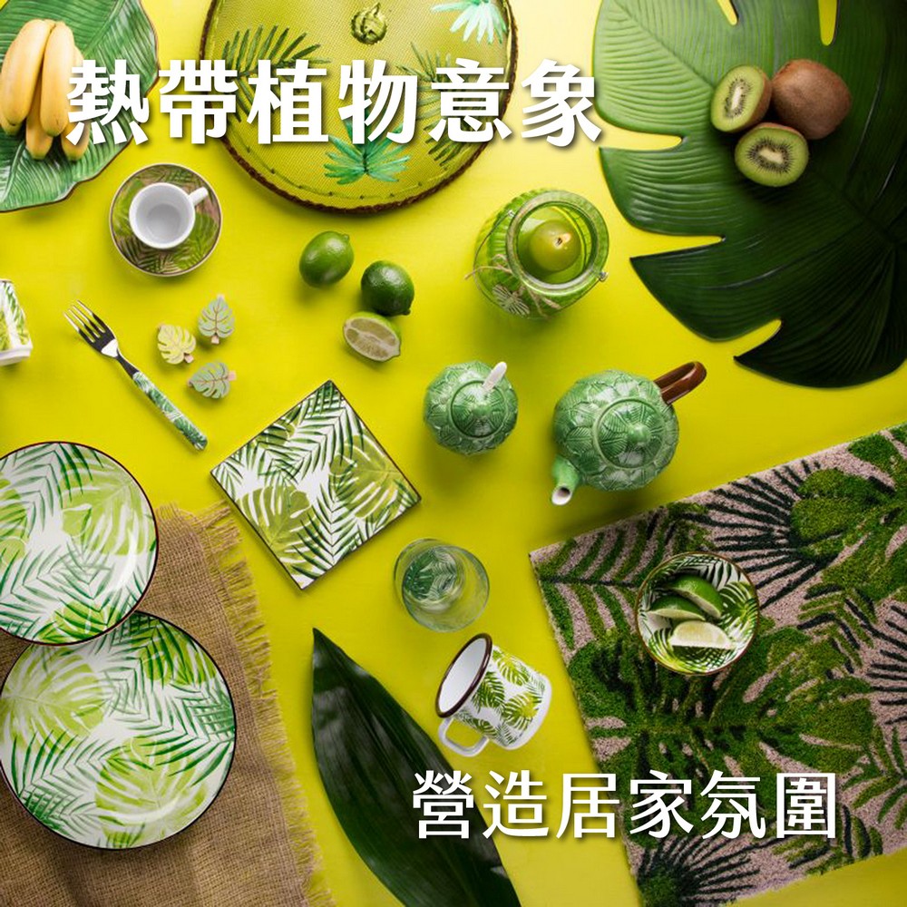 義大利 EXCELSA - Foliage椰子纖維地墊(熱帶植葉60x40cm) / 腳踏墊 刮泥地墊 棕梠地墊 玄關 門口 踏墊