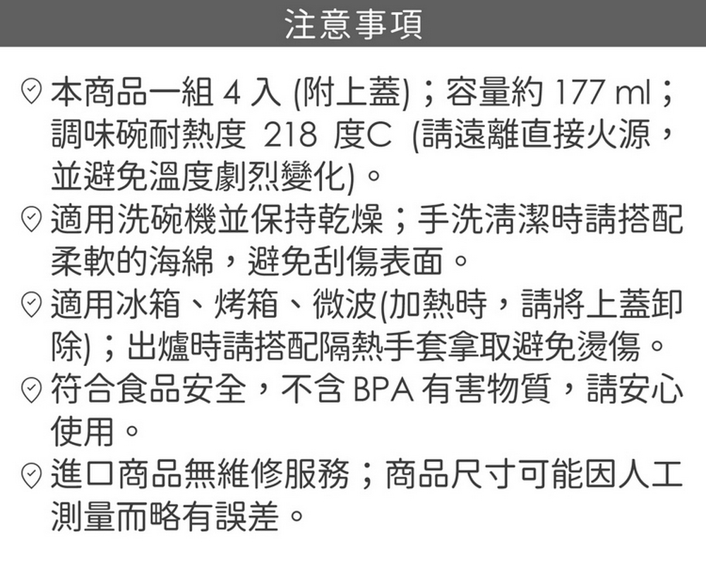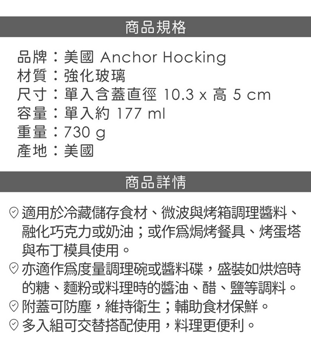 美國 Anchor Hocking - 附蓋玻璃調理碗4入(177ml) / 調理盆 醬料碗 調理皿