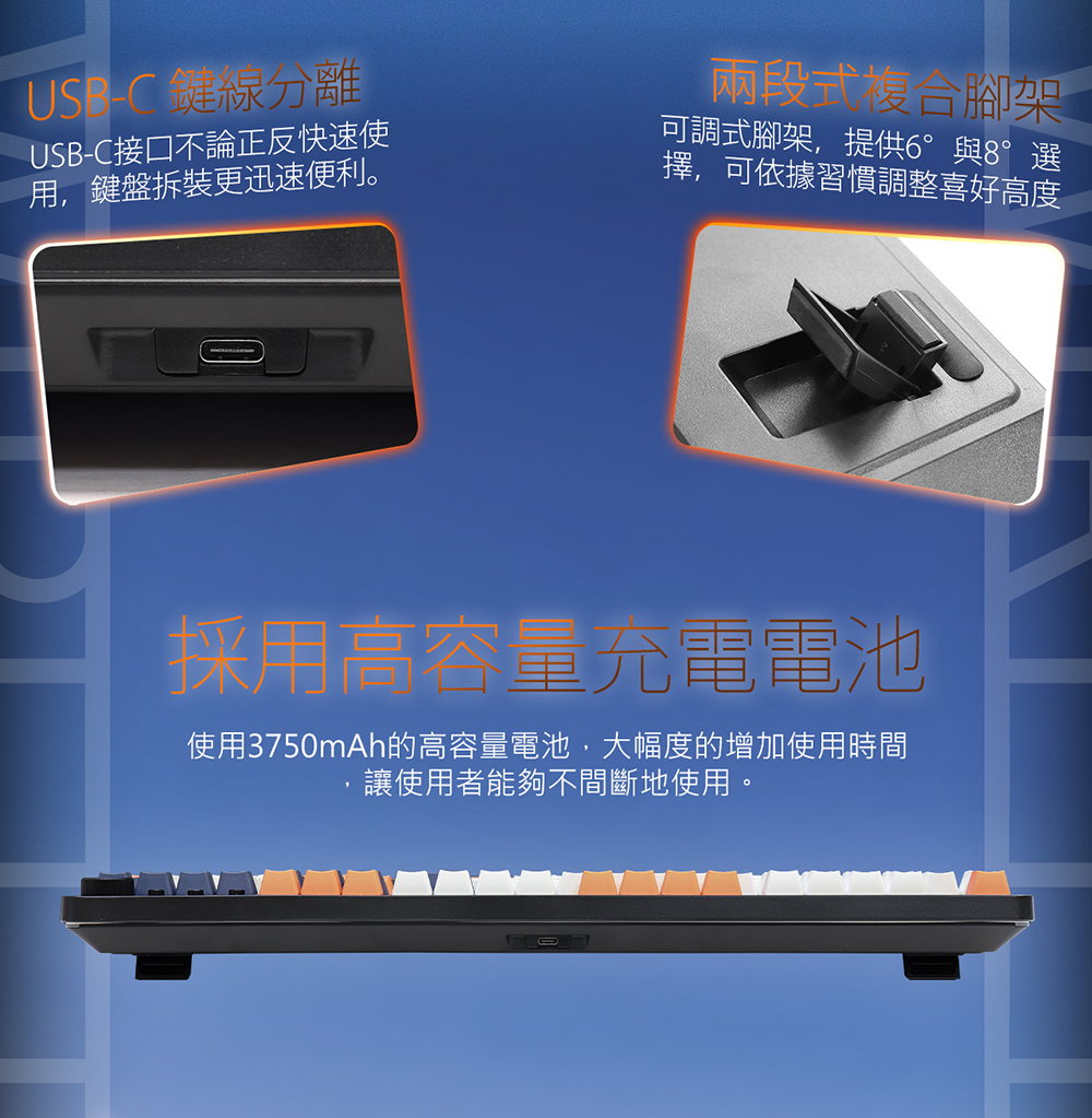 產品名稱: 無線機械鍵盤 產品型號: IRK73R 雙模介面 有線: USB-C 無線: 2.4GHz 按鍵數: 107 鍵 智慧型按壓滾輪: 1組 開關形式: 機械開關 按鍵行程: 4.0±0.5mm 全區防鬼鍵設計 (NKRO) 多媒體鍵: 15 鍵 背光功能: 無 電壓: DC 5V 充電接口: USB- C 可充式鋰電池容量: 3750 mAh 產品重量: 約 990 公克 USB 線長 : 約180 公分 產品尺寸: 446 (L) X 140(W) X 42 (H) mm 產品保固:2年