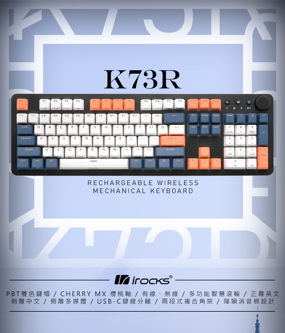 irocks K73R PBT 無線2.4G 機械式鍵盤 夕陽海灣-CHERRY