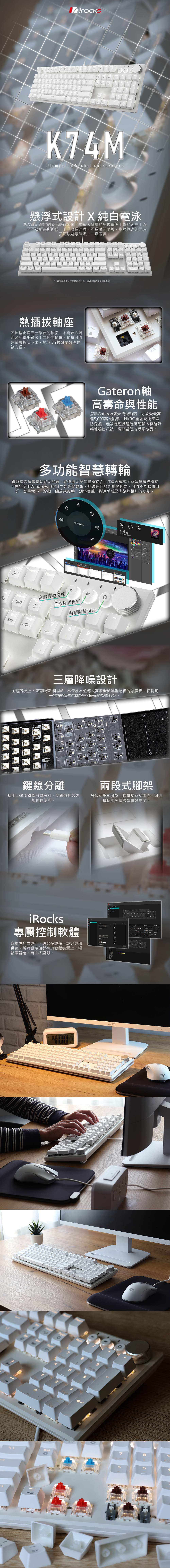irocks K74M 熱插拔-白色機械式鍵盤-Gateron