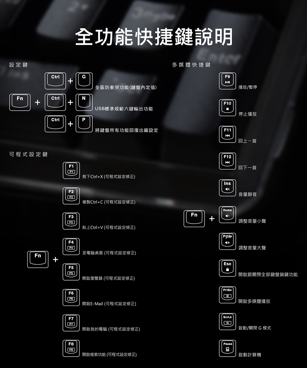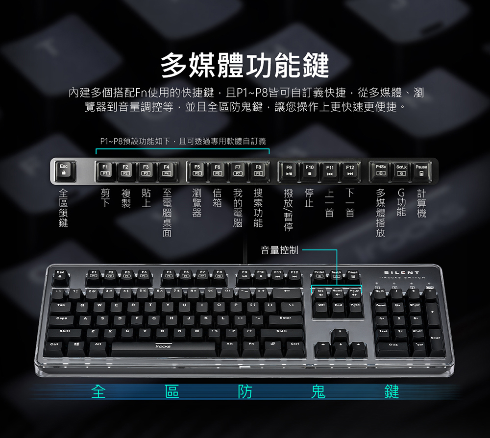 產品型號: IRK76MN Custom 介 面 : USB ( Full Speed ) 按鍵數 : 104 鍵 (依語文別而定) 開關 : i-Rocks獨家開關(茶軸、紅軸) 按鍵行程: 4.0±0.5mm 全區防鬼鍵設計 (NKRO) 多媒體鍵: 7 鍵 熱鍵控制鍵: 8 鍵 ( 可程式設定功能及Macro鍵錄製 ) 可程式及鍵盤硬體即時雙向設定選擇 多功能複合式G模式功能切換。 電壓/電流: DC 5V / 100mA Max. 線 長 : 200公分 商品尺寸:459 (L)*158.5 (W)*39.5 (H) mm 商品重量 : 約 1.3 公斤 系統需求: 微軟的視窗系統Windows® 7, Windows® 8.1 & Windows® 10. 可用的USB傳輸埠