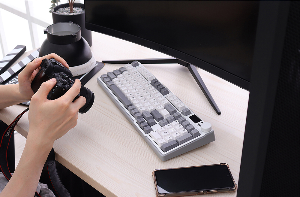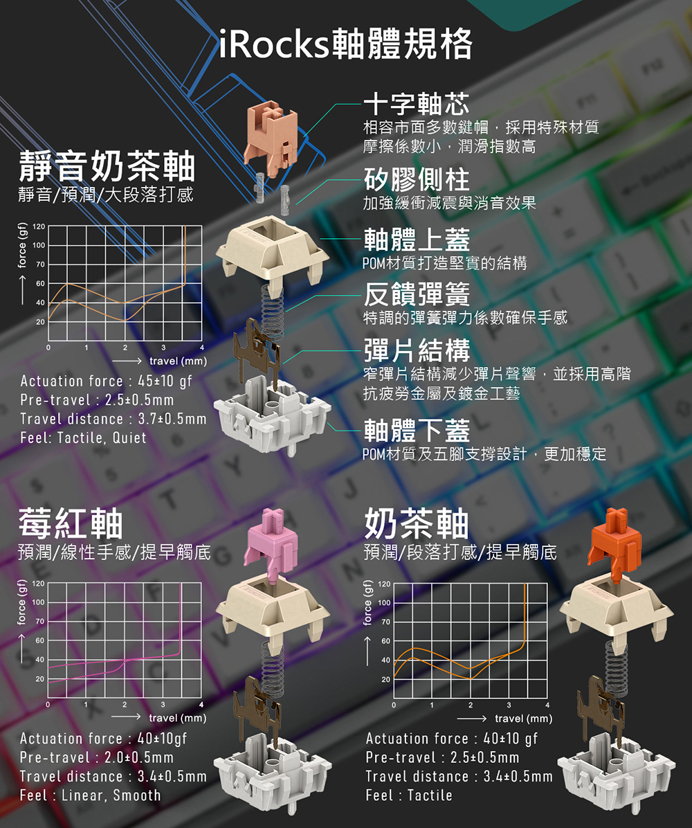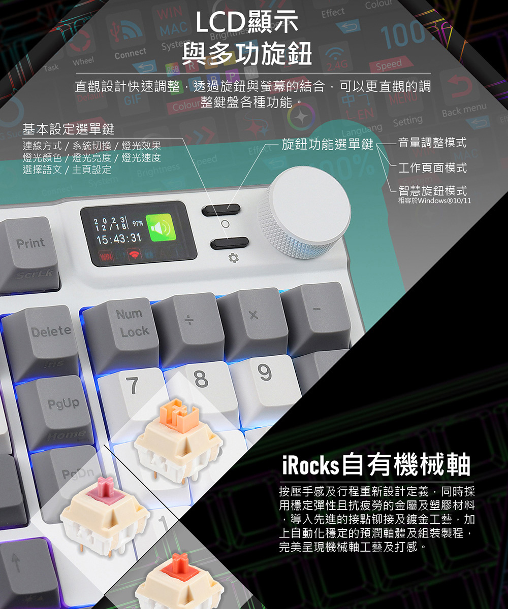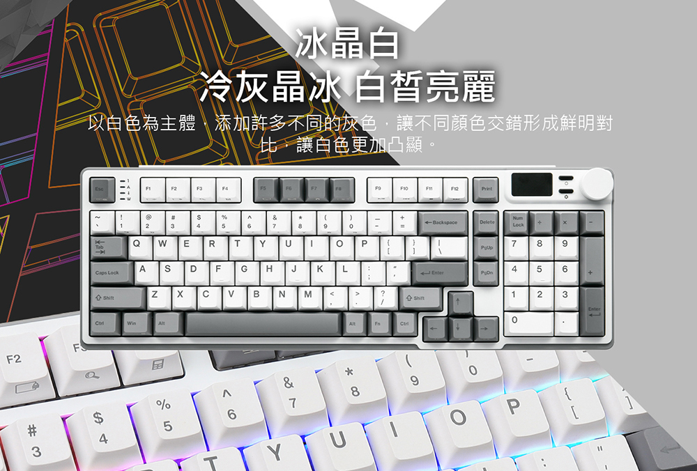 irocks K85R 機械式鍵盤-熱插拔奶茶軸/莓紅軸-RGB背光-冰晶白