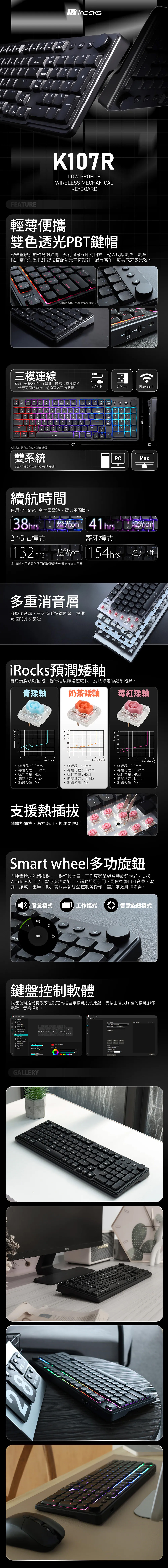 •   全鍵區採用iRocks自有預潤矮軸軸體,可插拔及自行替換鍵軸