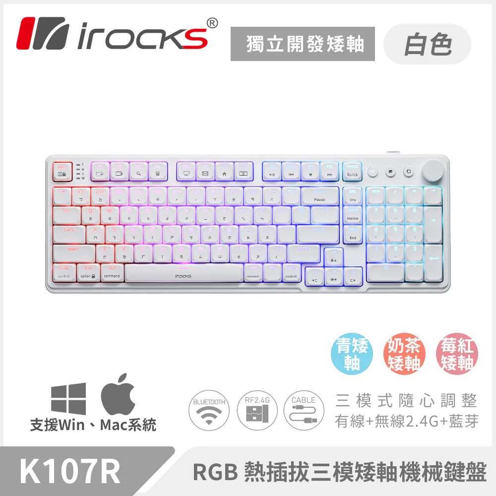 irocks K107R RGB 熱插拔三模矮軸無線機械鍵盤 白色
