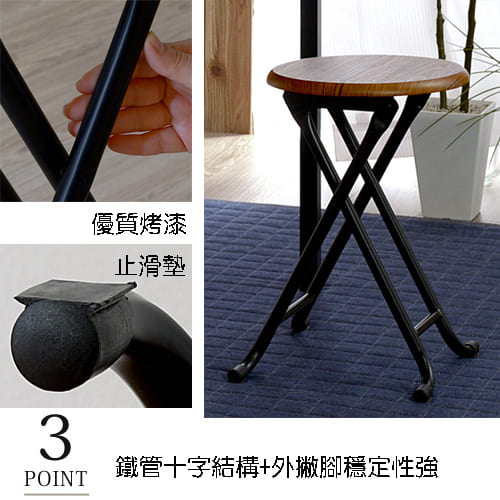 《C&B》古木調復古風格折合椅凳,主體結構採用結構穩固的鐵管製成,並在四支腳座底端各使用一個防滑橡膠,整體使用起來穩定不搖晃,加上質量都是外銷日本的超高要求,與一般市面的類似椅有很大的差別! 此外,椅腳的防滑套可避免滑動以外,更可保護地面免於刮傷;而座面下方設計有安全扣環,將椅子打開使用後卡榫即自動扣上,讓您無論使用時或折疊時都因為有卡榫而不會發生危險,是讓人信任的安心家具!