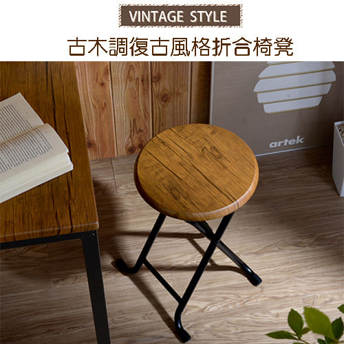 古木調復古風格折合椅凳(二入)