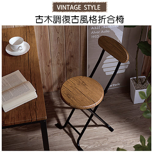 古木調復古風格靠背折合椅(二入)