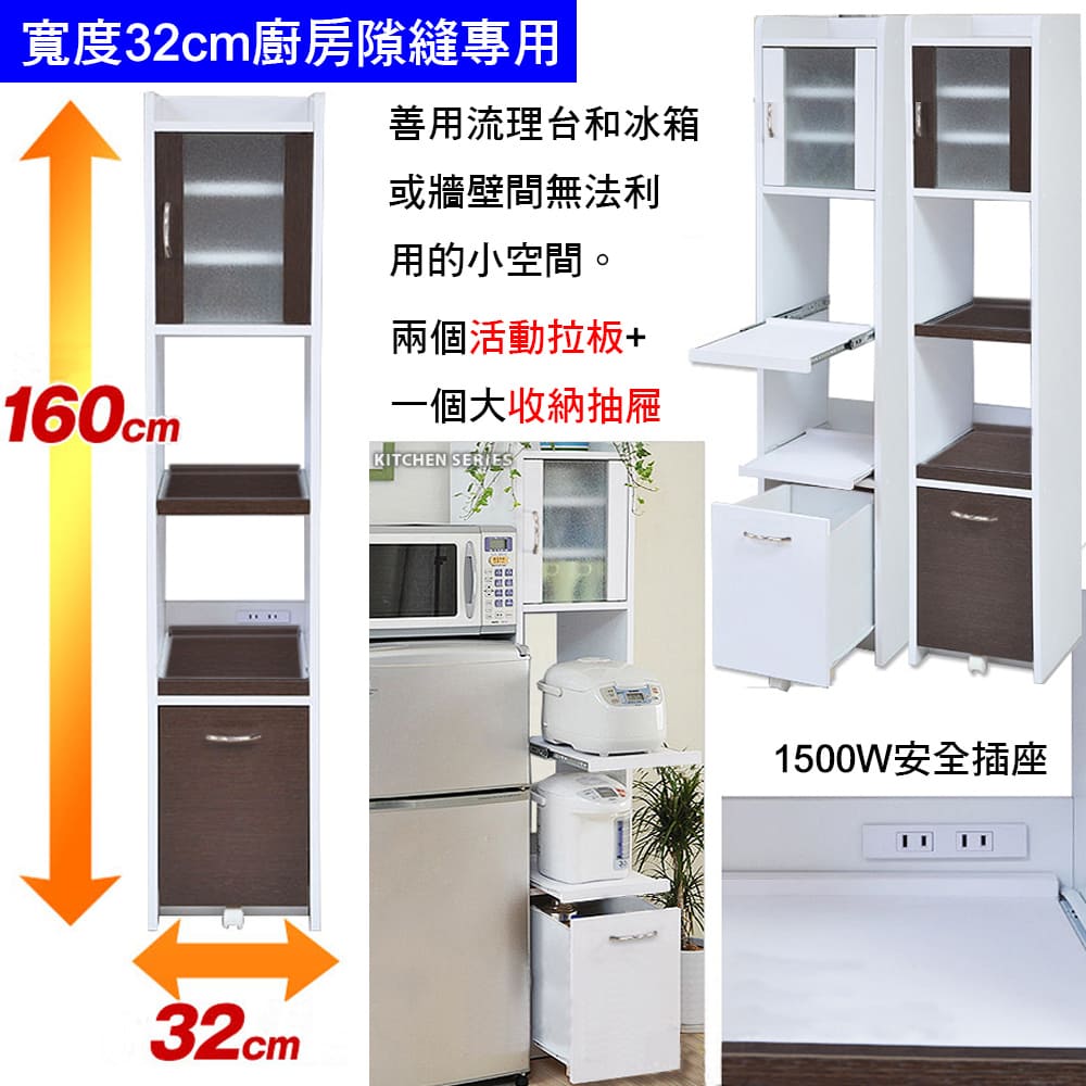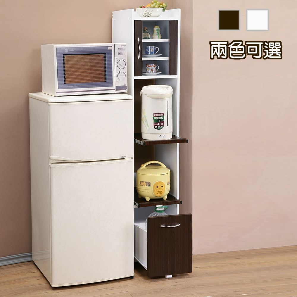 您的流理台和冰箱或牆壁間留有一個不大不小的空隙嗎?除了堆積雜物、影響美觀之外,也不能做其它的利用!那麼,您一定需要這一款《台所》加高型廚房隙縫電器櫃,只要將它置於廚房流理台與冰箱或牆壁之間的縫隙,甚至或任何有隙縫的角落,就可以將原本棄置不用的小空間變身為超強的收納櫃!