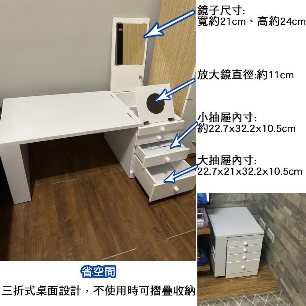 【三折設計】:展開可當書桌、和室桌、化妝桌;折合可當側邊櫃。