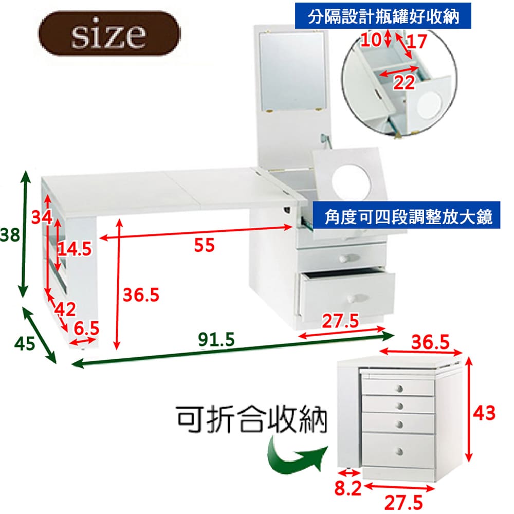 尺寸 : 約寬91.4*深45*高38CM(展開時) , 寬35*深45*高42CM(折疊時)