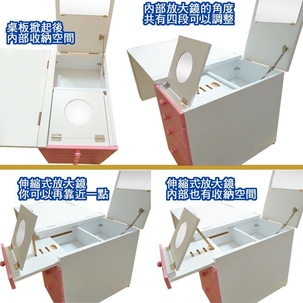 第二代的《粉彩心》折疊和室掀鏡化妝書桌貼心的將第一代廣受好評的《修容放大鏡》由後方改為前方,讓您輕鬆的就可以攬鏡自照,並且增加了角度調整功能,讓您使用放大鏡時有三個角度可以調整,強化了修容放大鏡的使用機能與效果,您的需要與需求我們完全都幫您想到了喔!