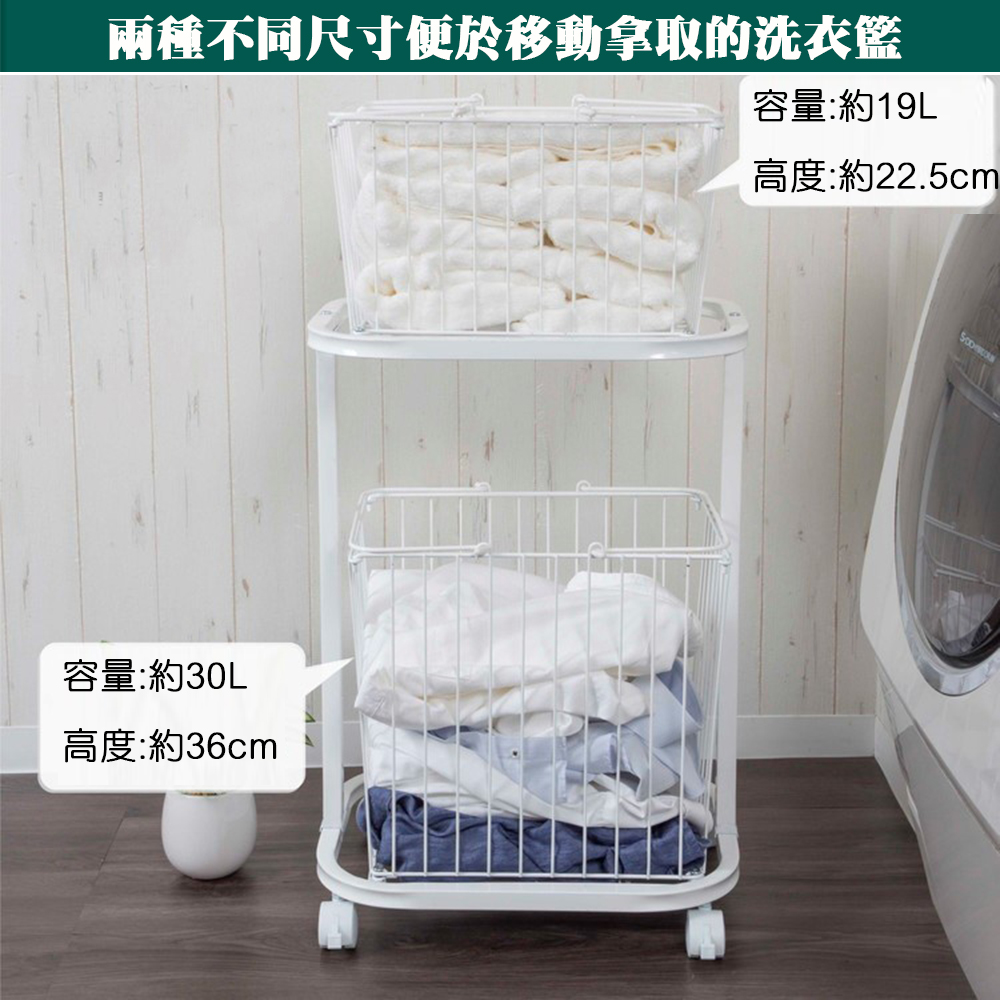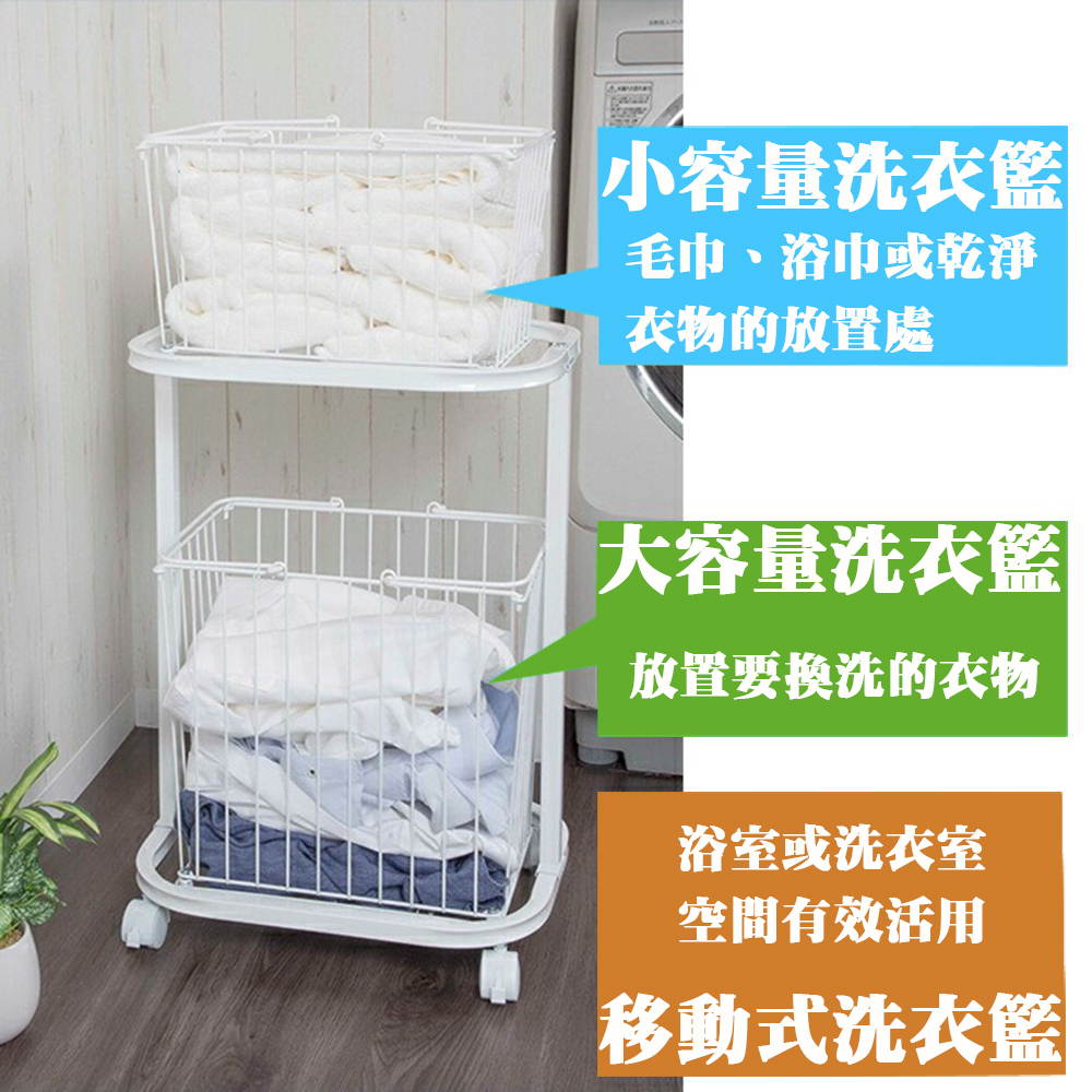 日式輕奢可移動家用雙層洗衣籃車/髒衣籃推車/衣物洗衣架/台灣製
