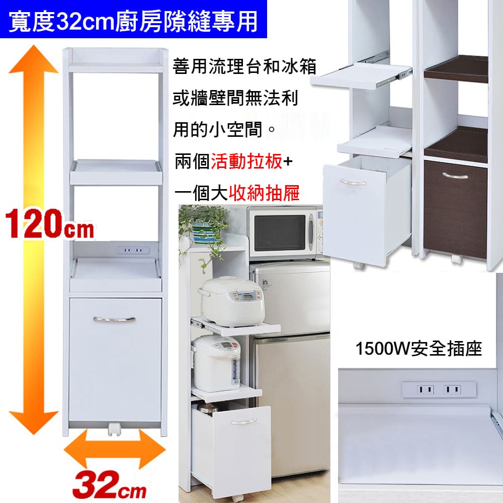 ★細縫式寬僅32公分!居家畸零空間不浪費,收納戰力100%up!up~~★