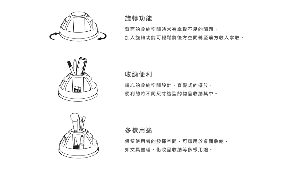 多樣用途  保留使用者的發揮空間,可應用於桌面收納. 如文具整理、化妝品收納等多樣用途。