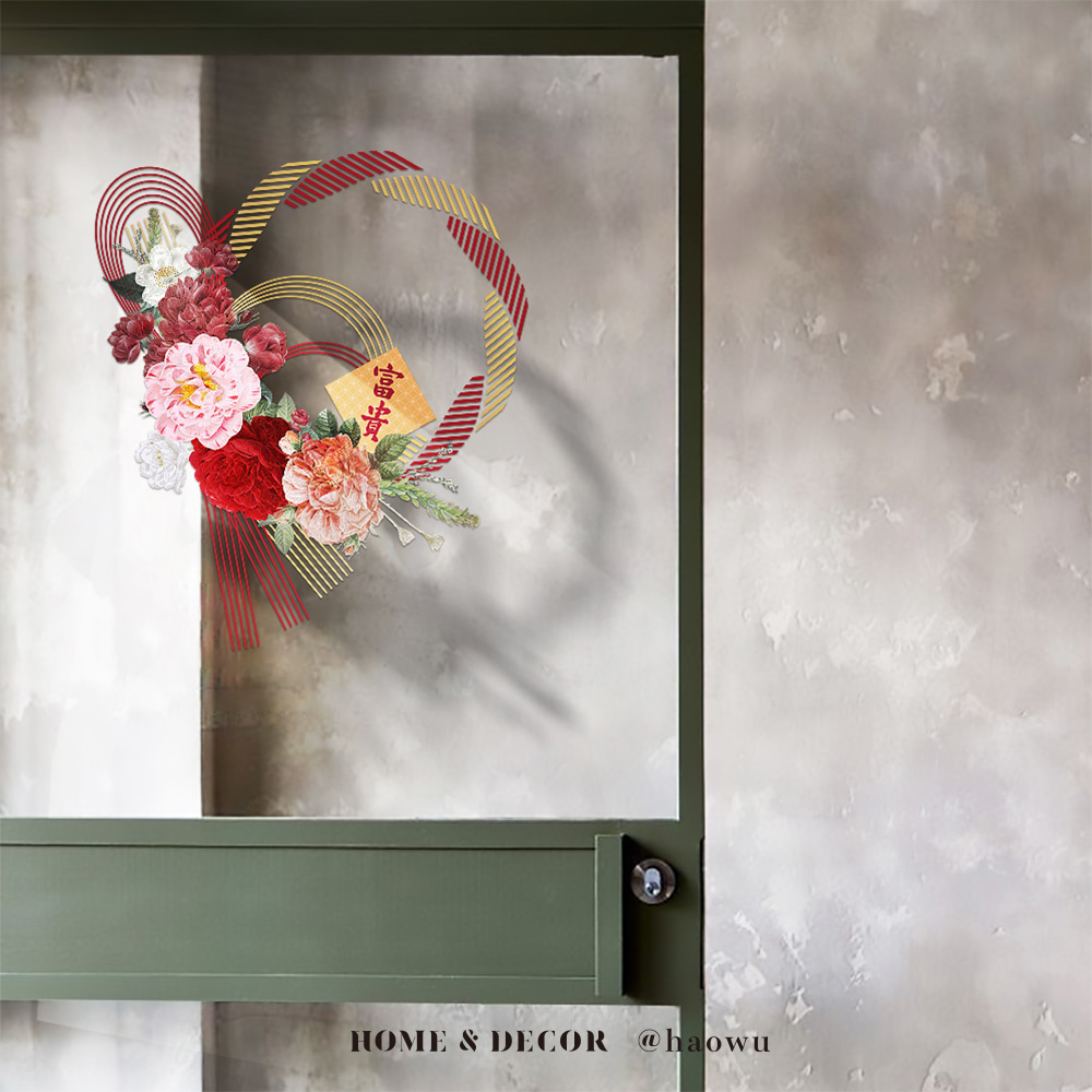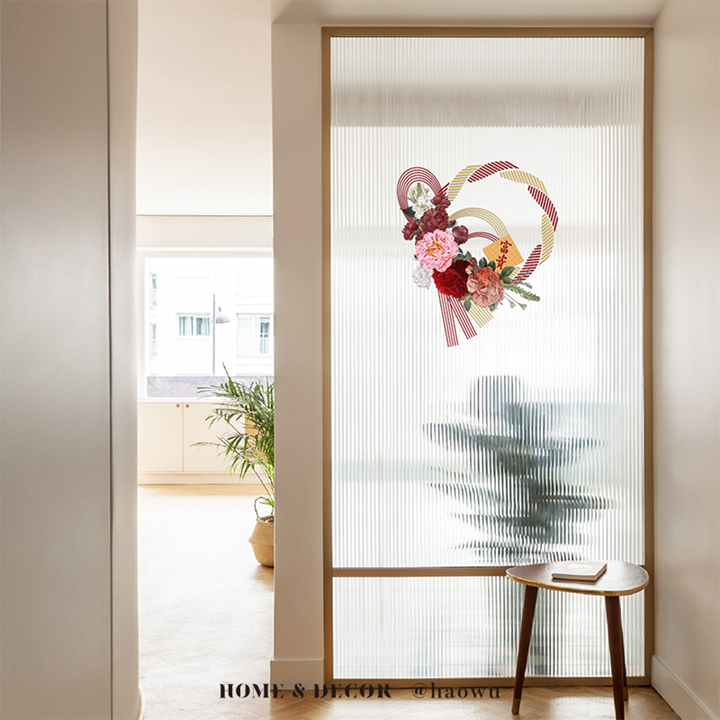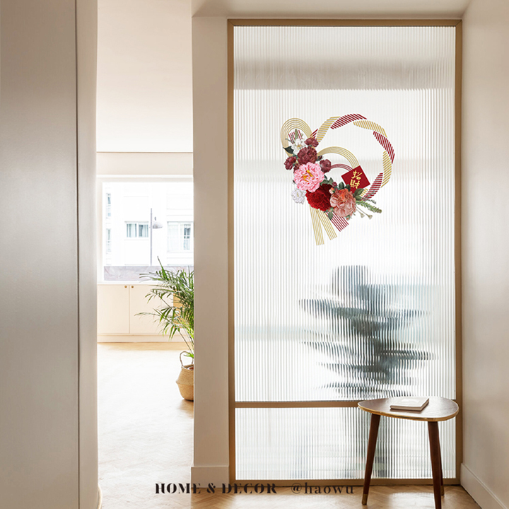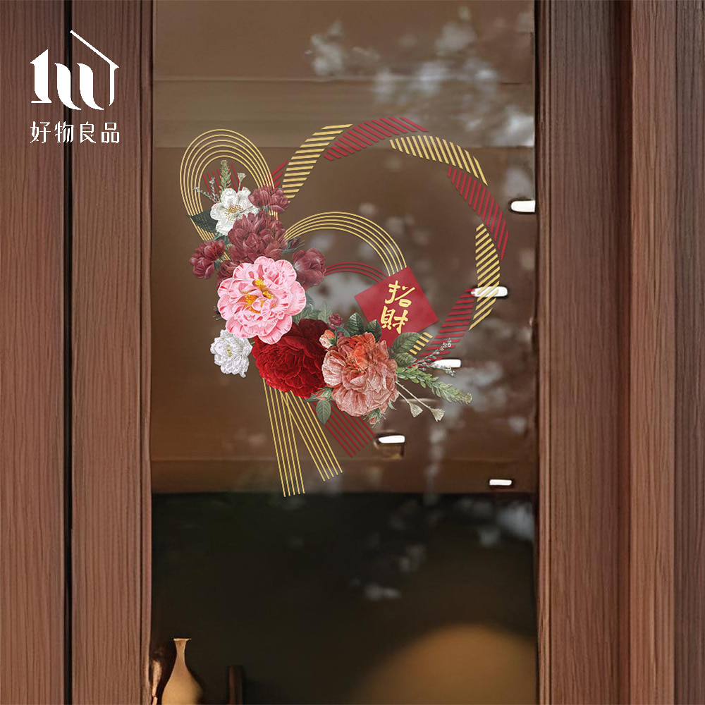 花卉款《富貴平安》《財源廣進》新春過年節慶玻璃門窗靜電窗貼
