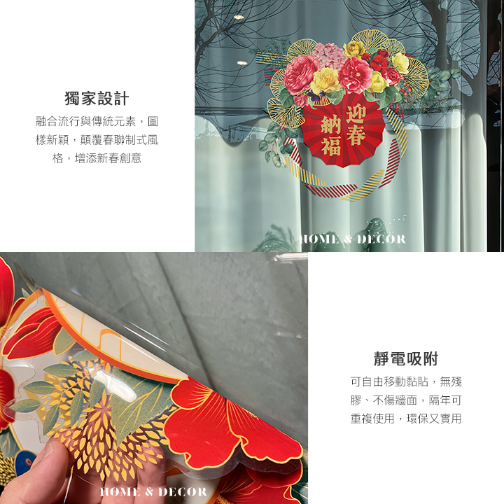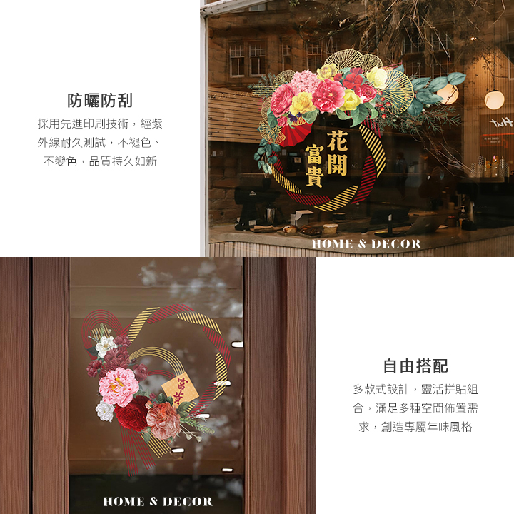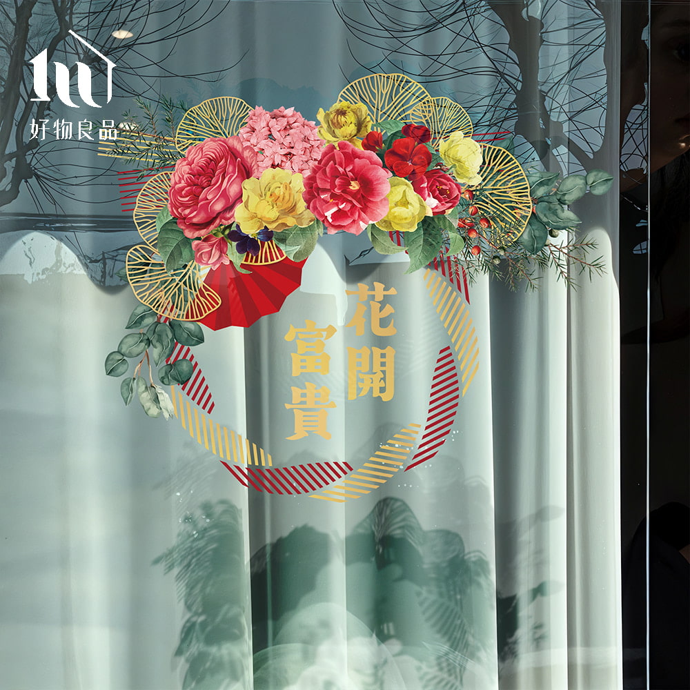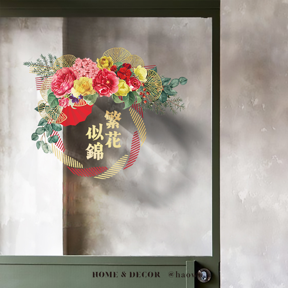 花卉款《繁花似錦》《花開富貴》新春過年節慶玻璃門窗靜電窗貼