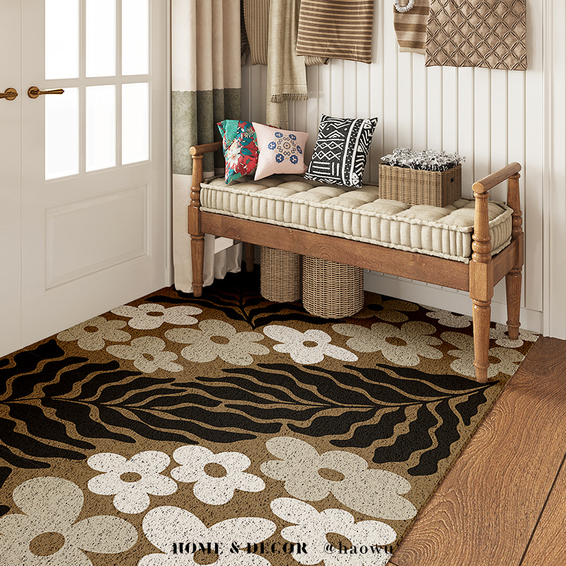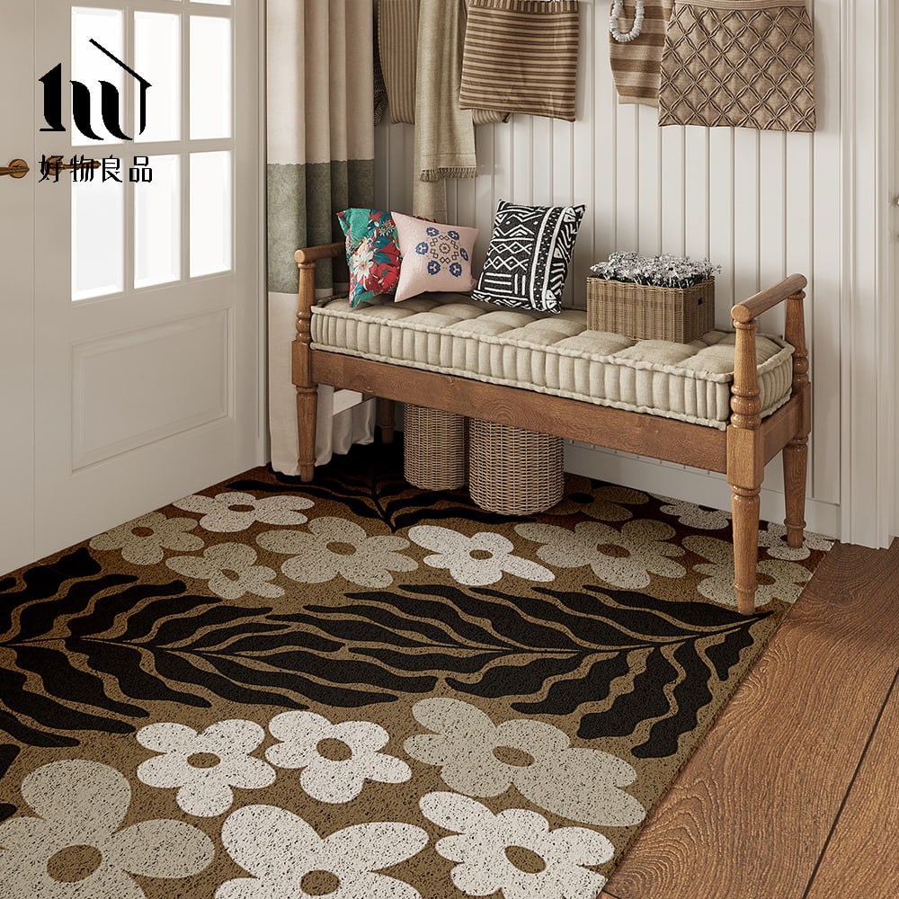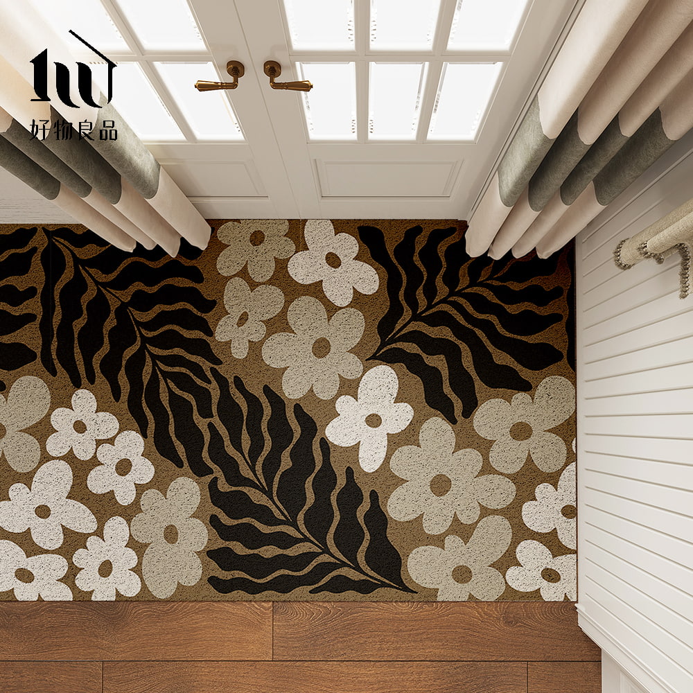 花卉系列《魅影浮花》獨家設計大尺寸可剪裁玄關大門絲圈刮泥墊