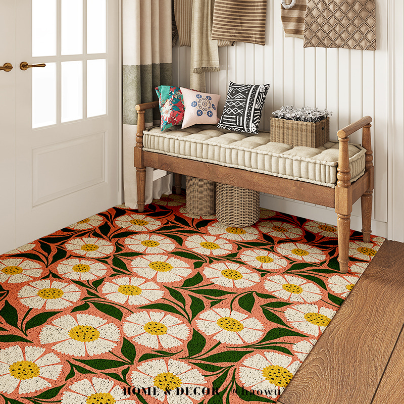 花卉系列《春日花語》獨家設計大尺寸可剪裁玄關大門絲圈刮泥墊
