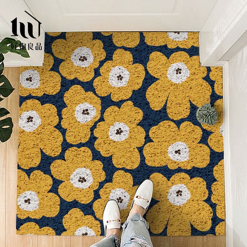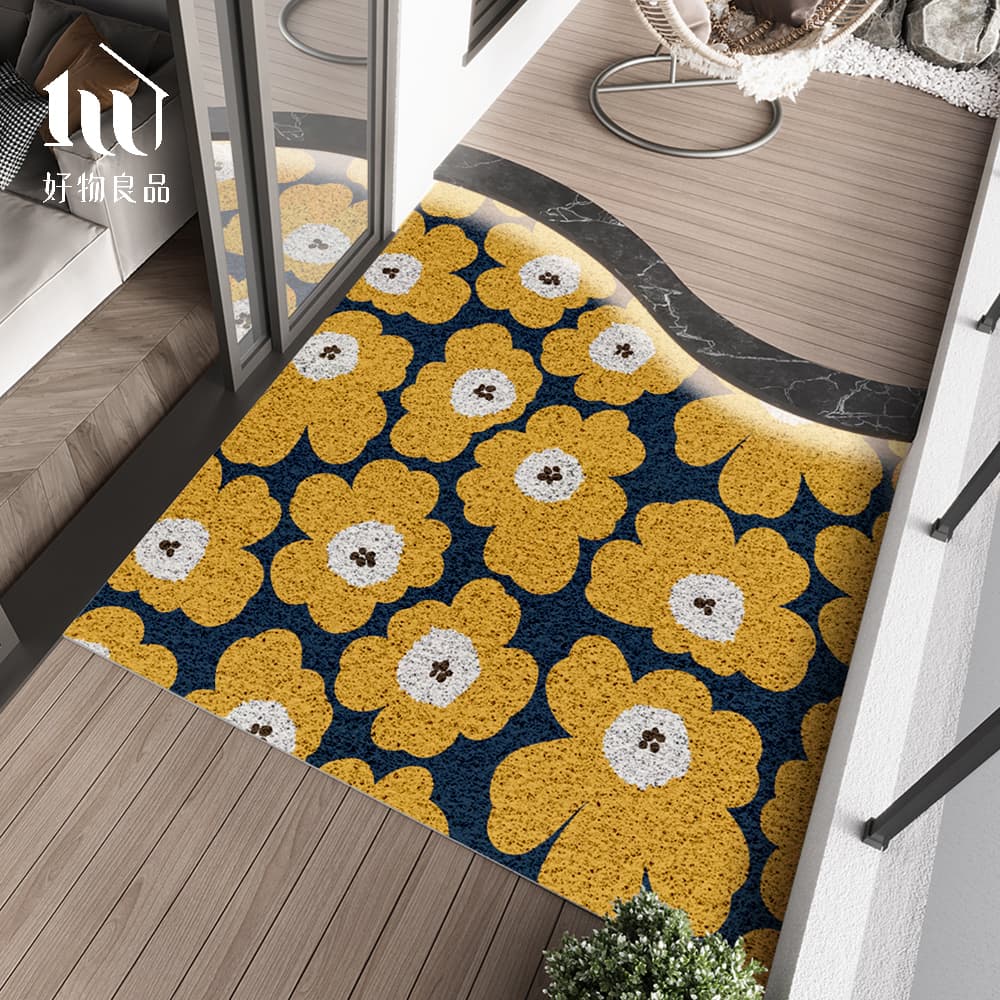 森林系列《黃色花語》獨家設計大尺寸可剪裁玄關大門絲圈刮泥墊