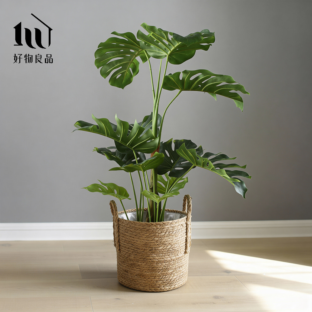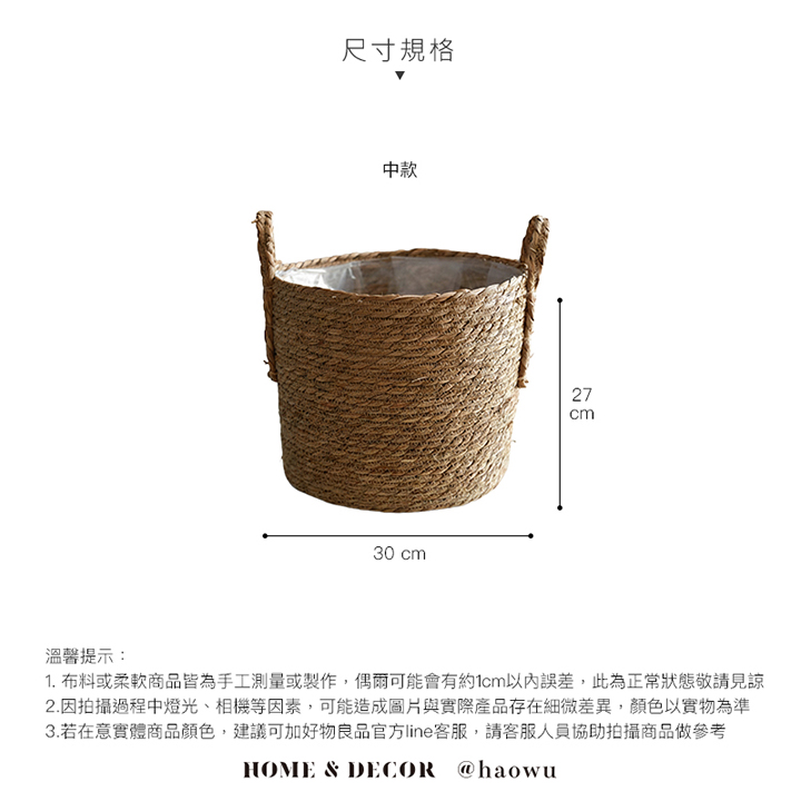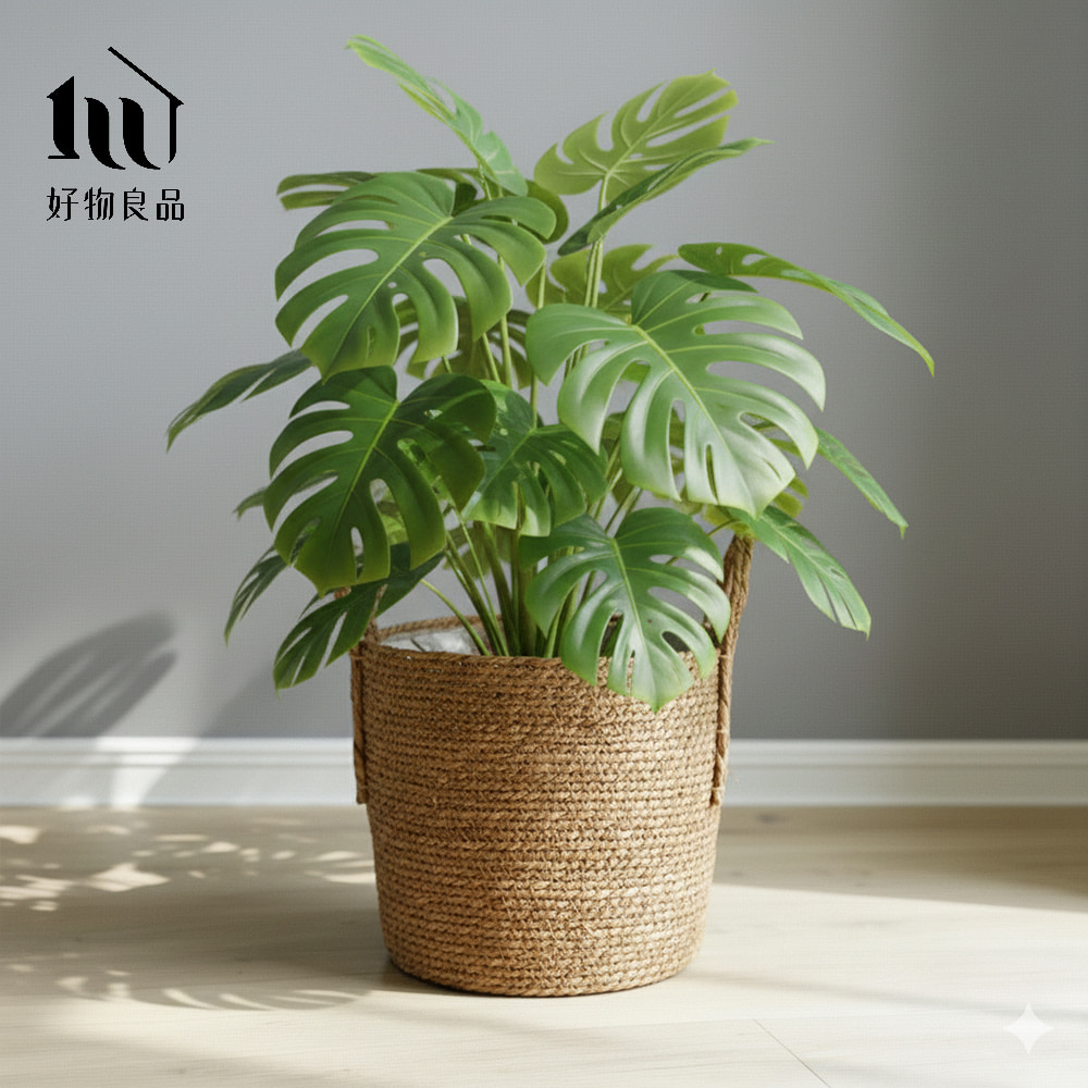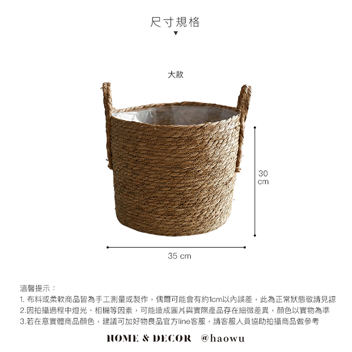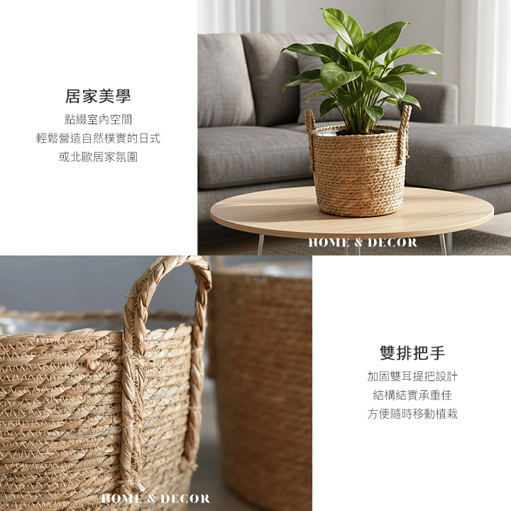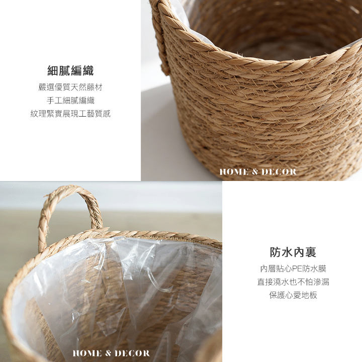 日本藤編植物盆栽籃|防水內裏花盆套雙提手落地籃居家綠植收納