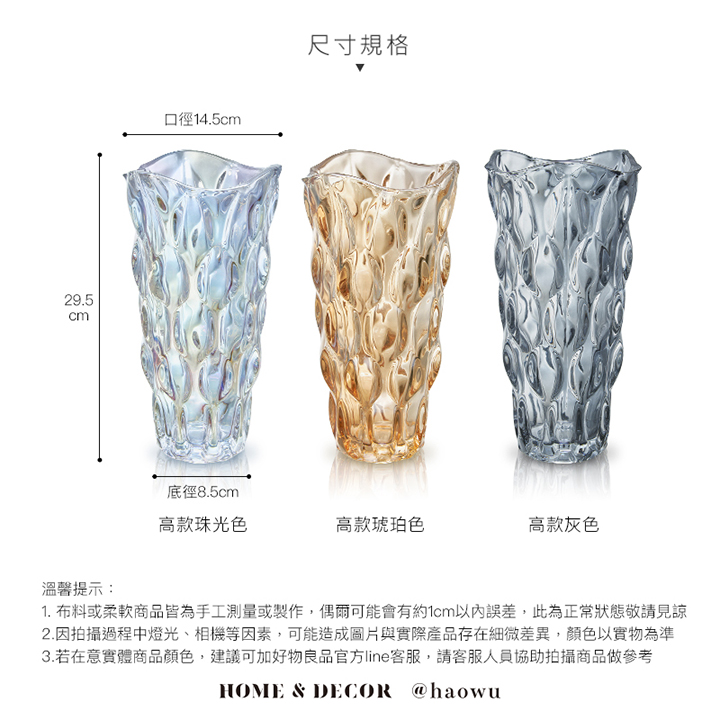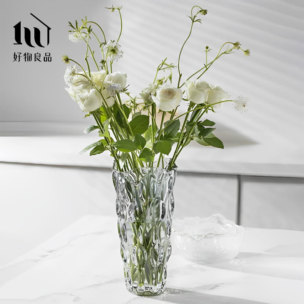 • 厚實的玻璃花瓶,可放入較高的花束不怕傾倒。