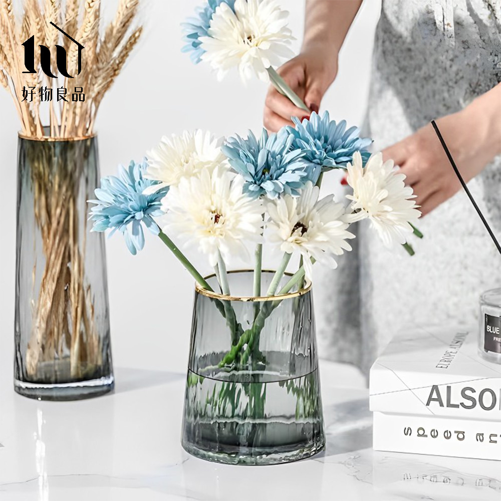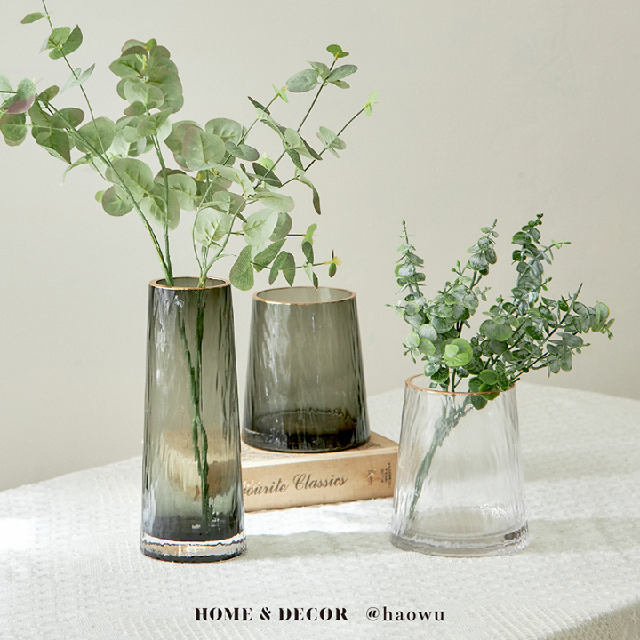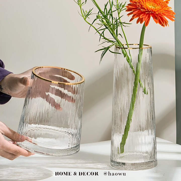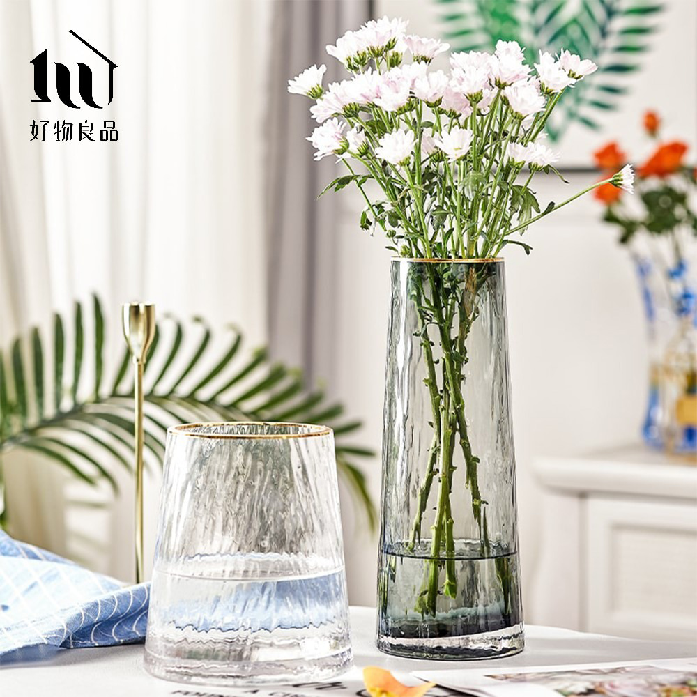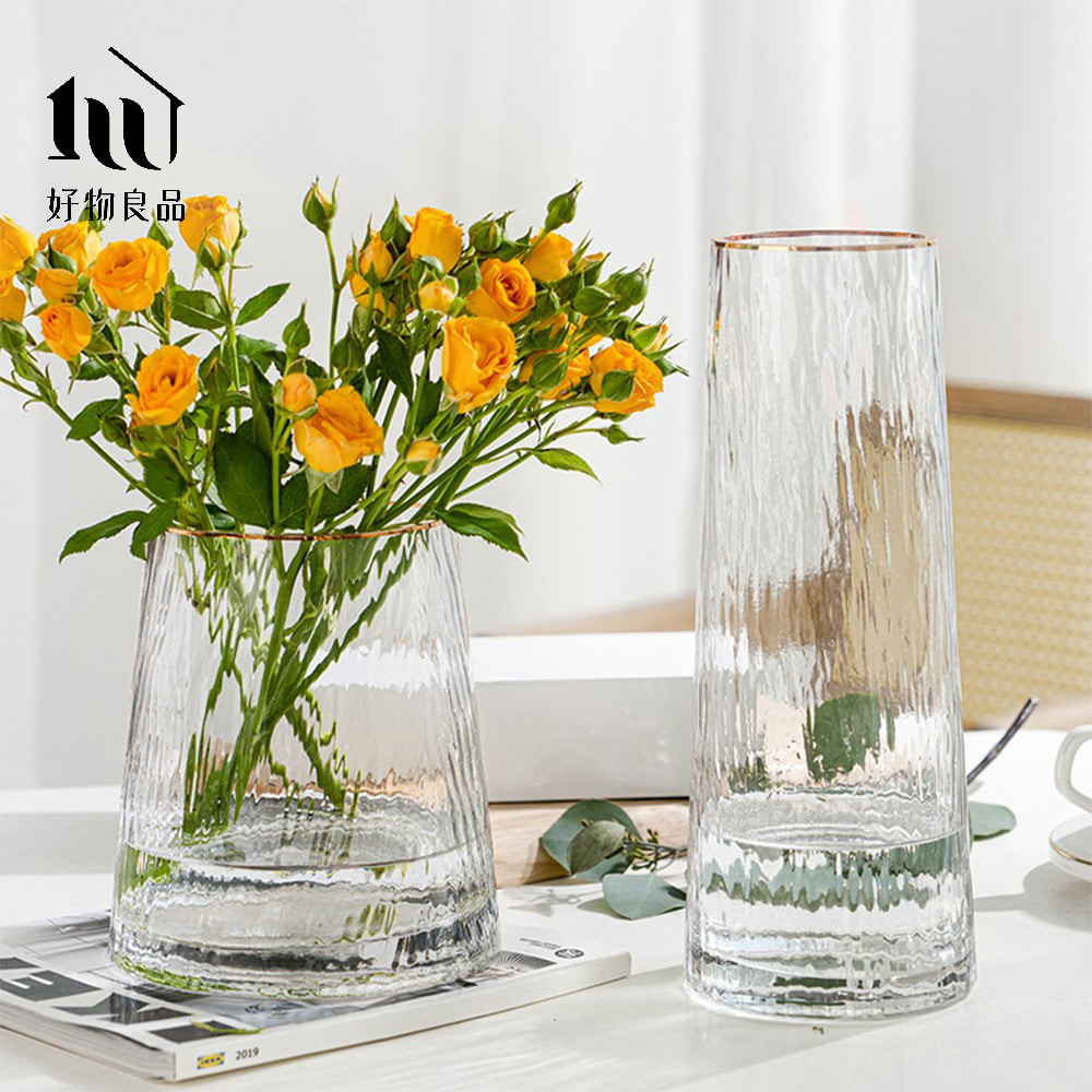 北歐輕奢透明錘紋玻璃金邊花瓶餐桌裝飾(圓形款)