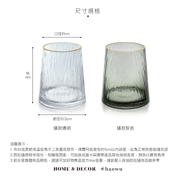 • 加厚瓶底-加厚玻璃底部讓重心在下方,擺放更穩定不易傾倒