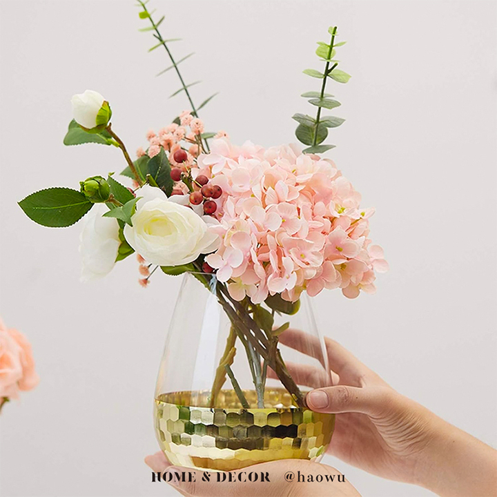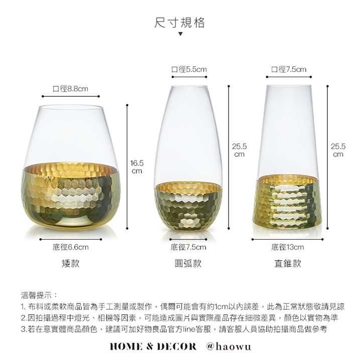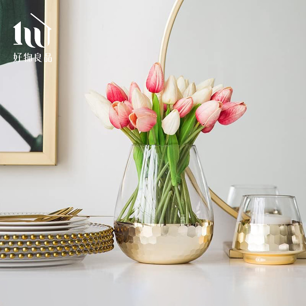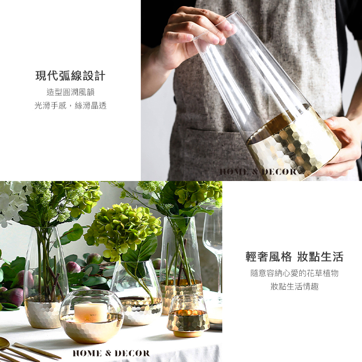 《矮款/圓弧款》簡約輕奢水晶玻璃金箔鑲色雙色花瓶