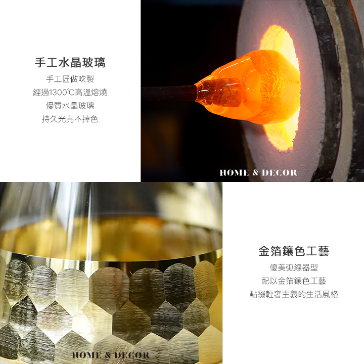 • 手工水晶玻璃-手工匠做吹製,經過1300℃高溫熔燒,優質水晶玻璃,持久光亮不掉色