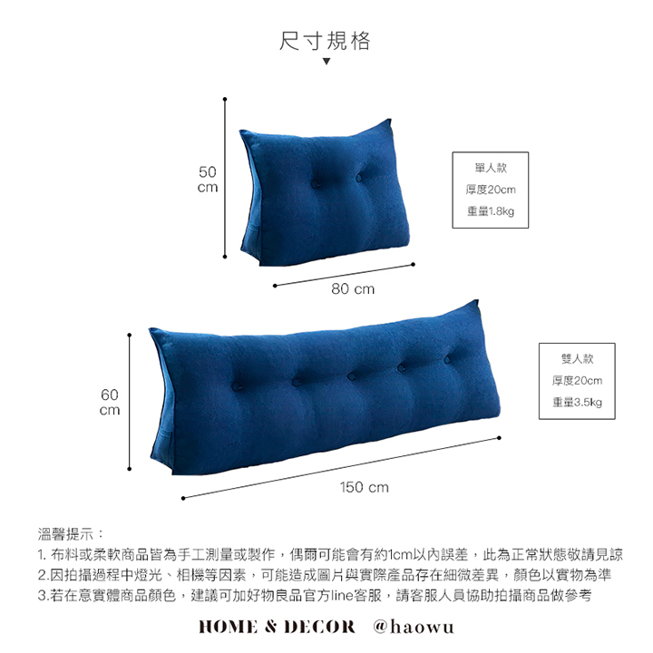 單人_日式簡約三角形床頭腰背靠枕 (80x50x20厚cm)