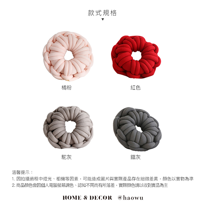 手工甜甜圈結抱靠枕(4色任選)