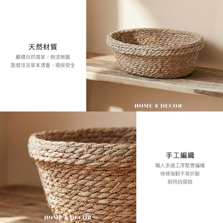 • 天然材質:嚴選自然海草,無漆無蠟,散發淡淡草本清香,環保安全。